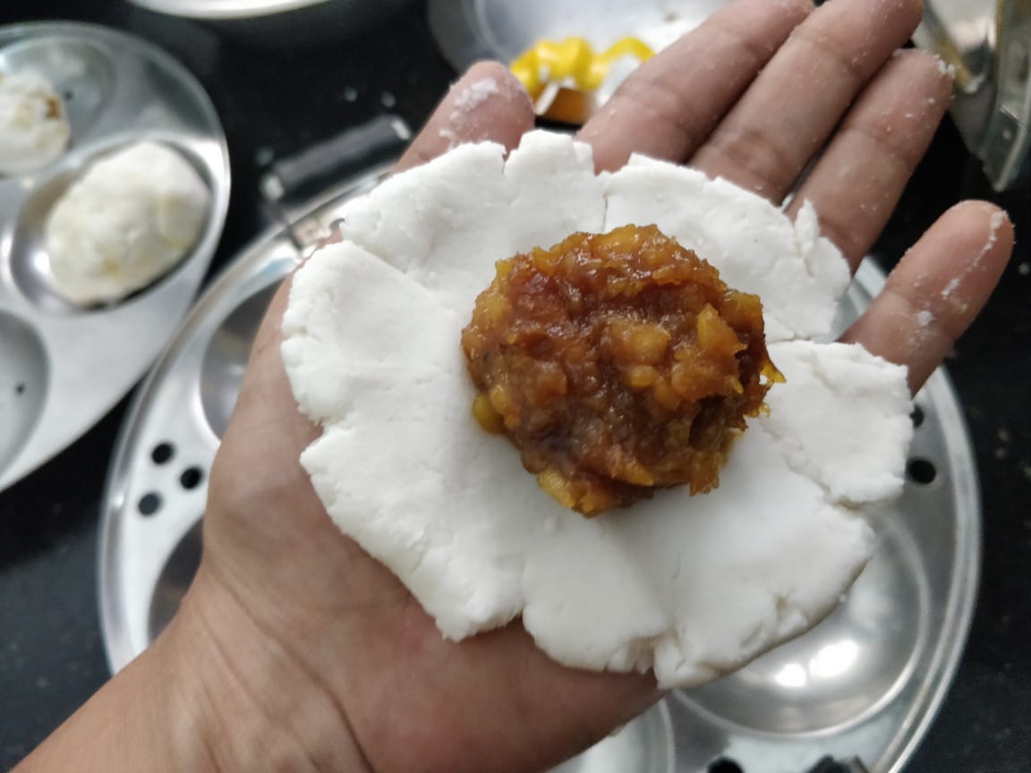 I have used Jack fruit jaggery filling( instead of sesame seeds) which I had preserved in freezer .