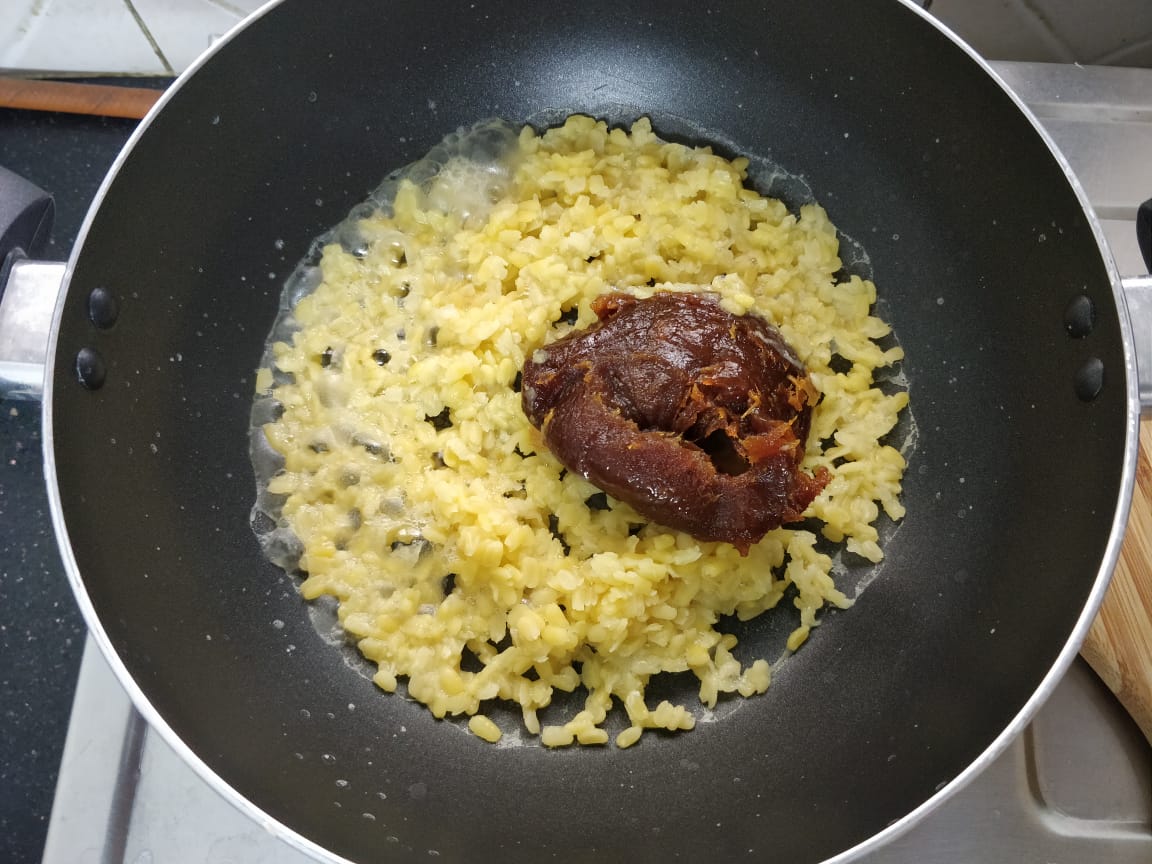 Heat a pan add 3 tbsp jaggery and little water stir well .