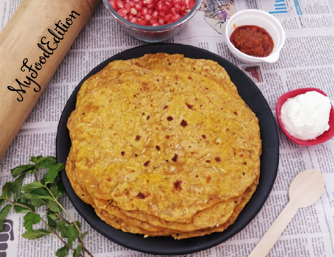 Indian flat bread or Gujarati Thepla or Roti can be made using whole wheat flour. Roti is made easily just by mixing all the ingredients like Indian spices and adding any veggie of your choice and make it like chappatis. You can try different rotis like carrot roti, drumstick leaves roti , methi roti using the same recipe . This recipe contains ajwain which has fiber and antioxidants and it is also used in Indian medicine practices. Raddish has good health benefits so, all combined it is a very healthy meal and easy to make too . Roti can be prepared for lunch boxes , breakfast or even dinner. This Roti goes well with pickle , raita or just with plain curd it tastes so yummy. Do try and enjoy this roti with your family. Lets start with the making of roti.