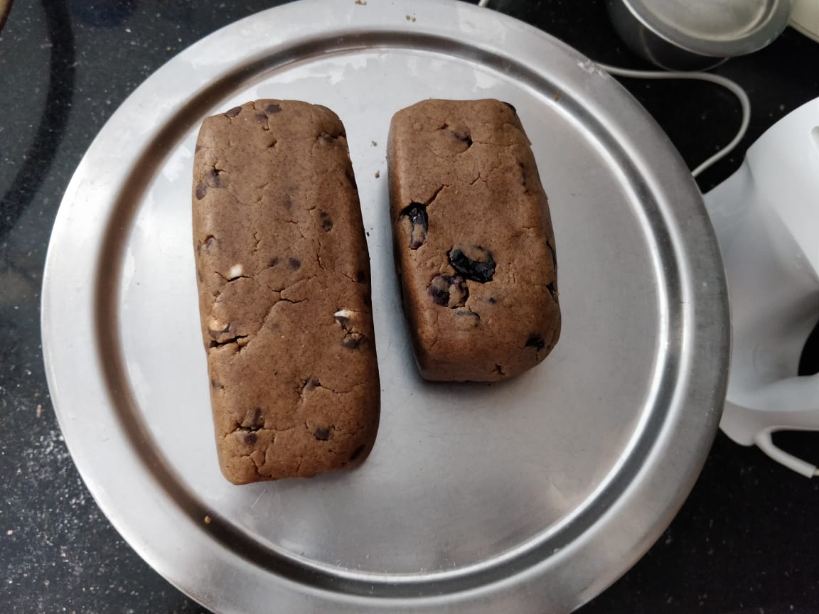 You can add chocochip or nuts here to the dough and make a log.