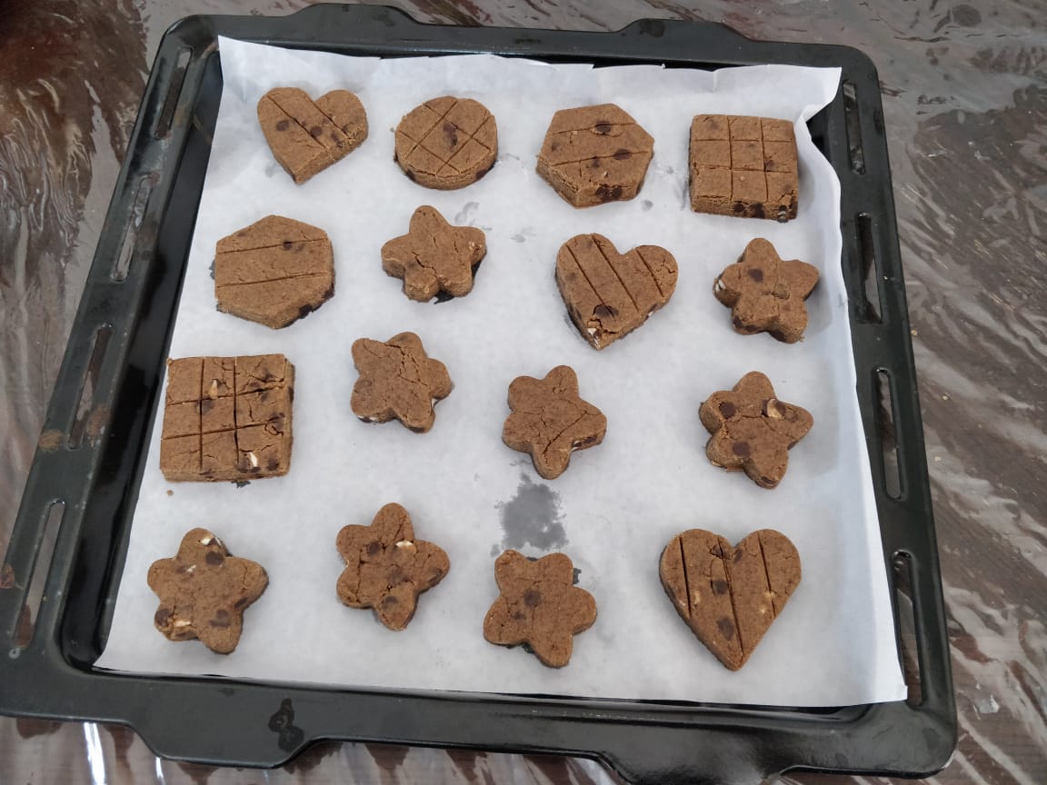 Scoop out the cookies using cookie cutter or shape them using hands.