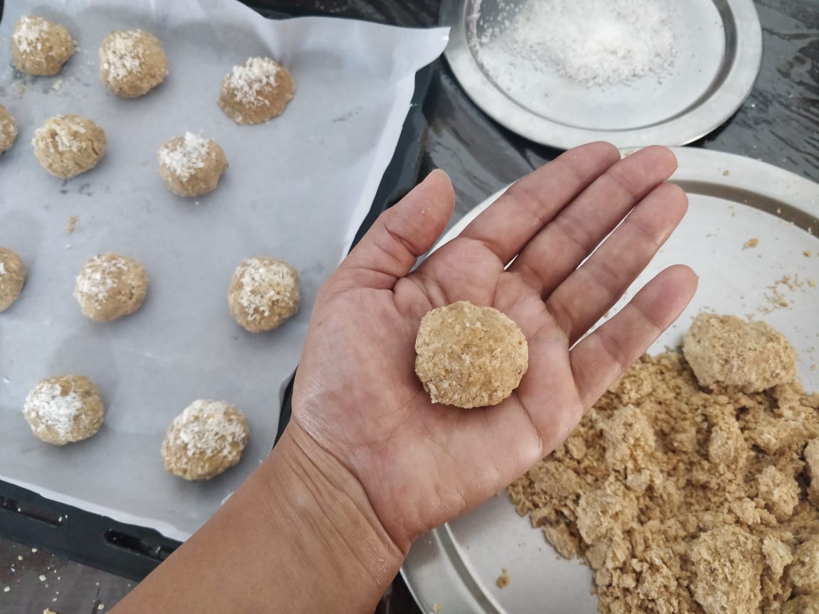 Desicated coconut – 50 gm + 20 gm( for coating)