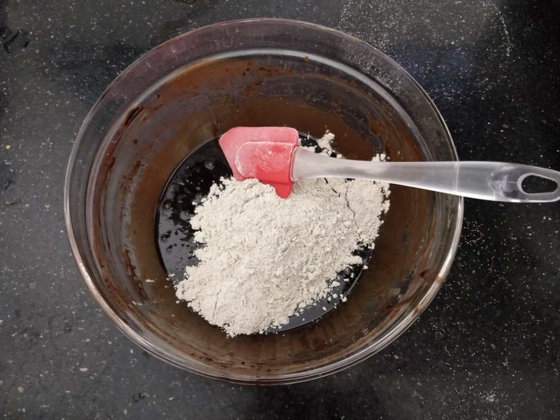 Sift millet flour and baking powder thrice and keep aside.