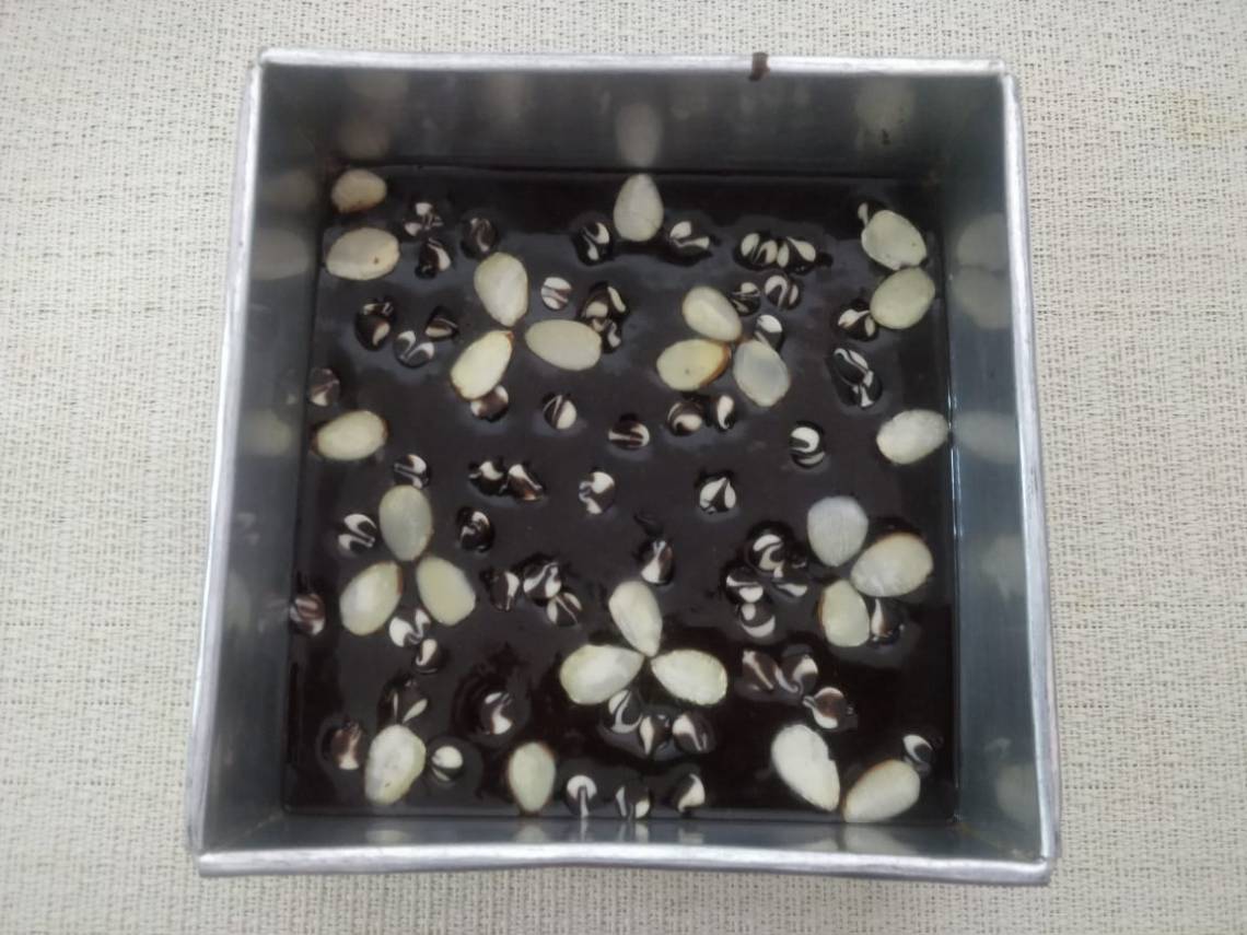 Tap the tray and add nuts and Chocochip on top.