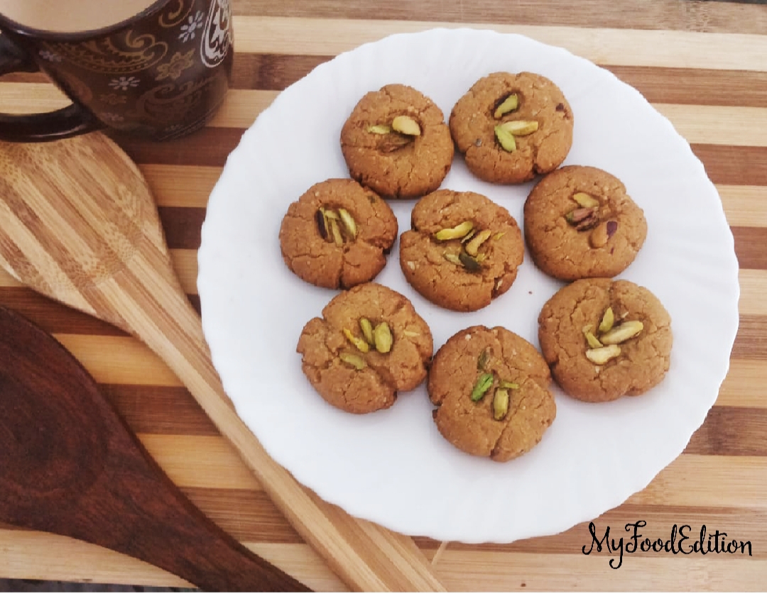 Cookies are a must in our house. For mid morning and evening tea time , kids need something to munch . So I bake cookies on regular basis. Cookies made at home are buttery, so delicious, melts in mouth and healthy as well. I just love experimenting cookies and cakes with different ingredients. Nankhatai is generally made with desi ghee, gram flour, maida and sugar. I have tried a gluten free version of nankhatai with freshly ground almonds. I tried making it without baking powder or baking soda. Through these cookies, nuts too are consumed by my kids. I have used coconut sugar in this cookie for a change. So do try this gluten free nutty nankhatais for your family and enjoy it . Happy baking!