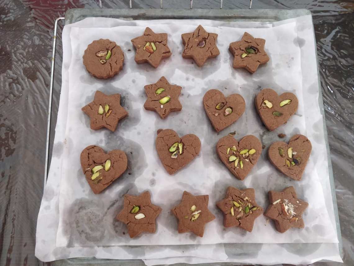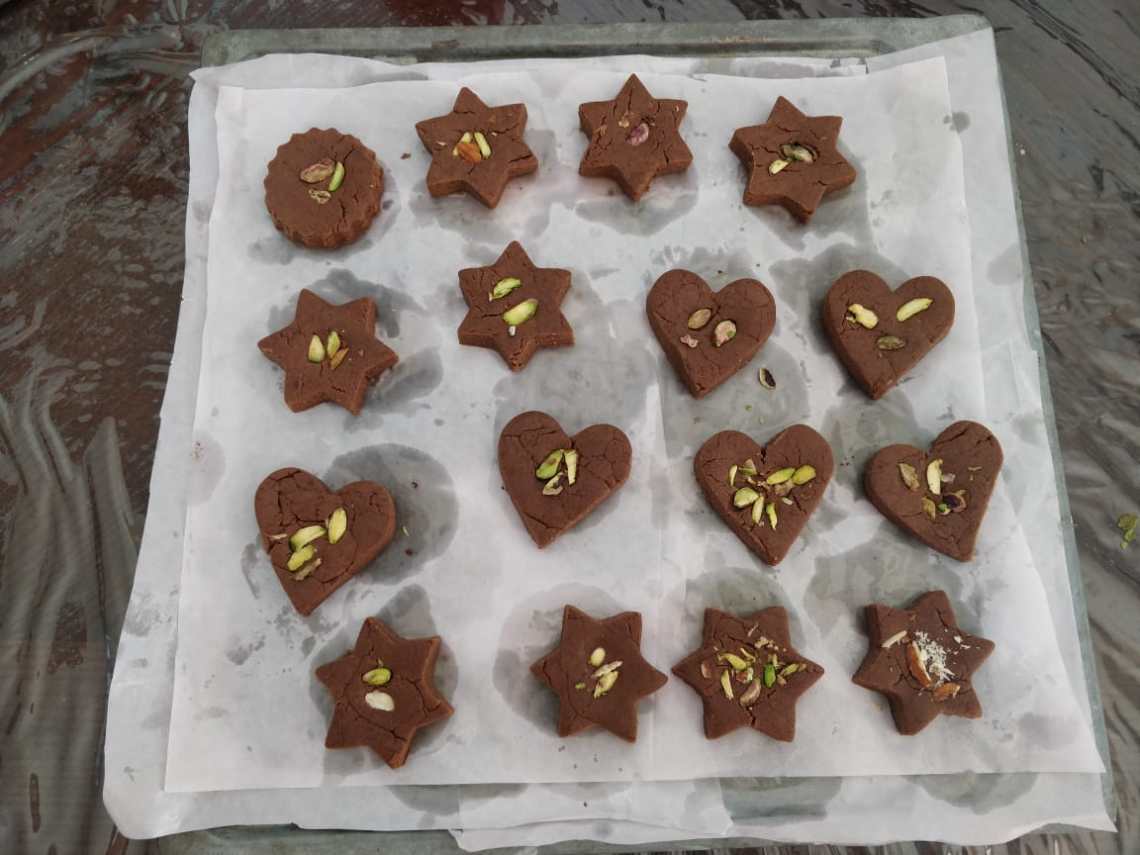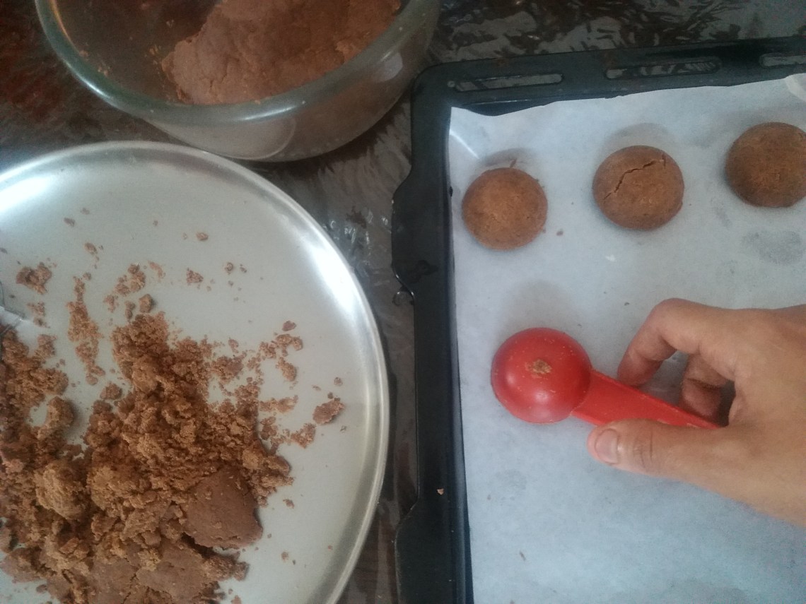 Place the cookies in a lined baking tray with an inch distance between them.