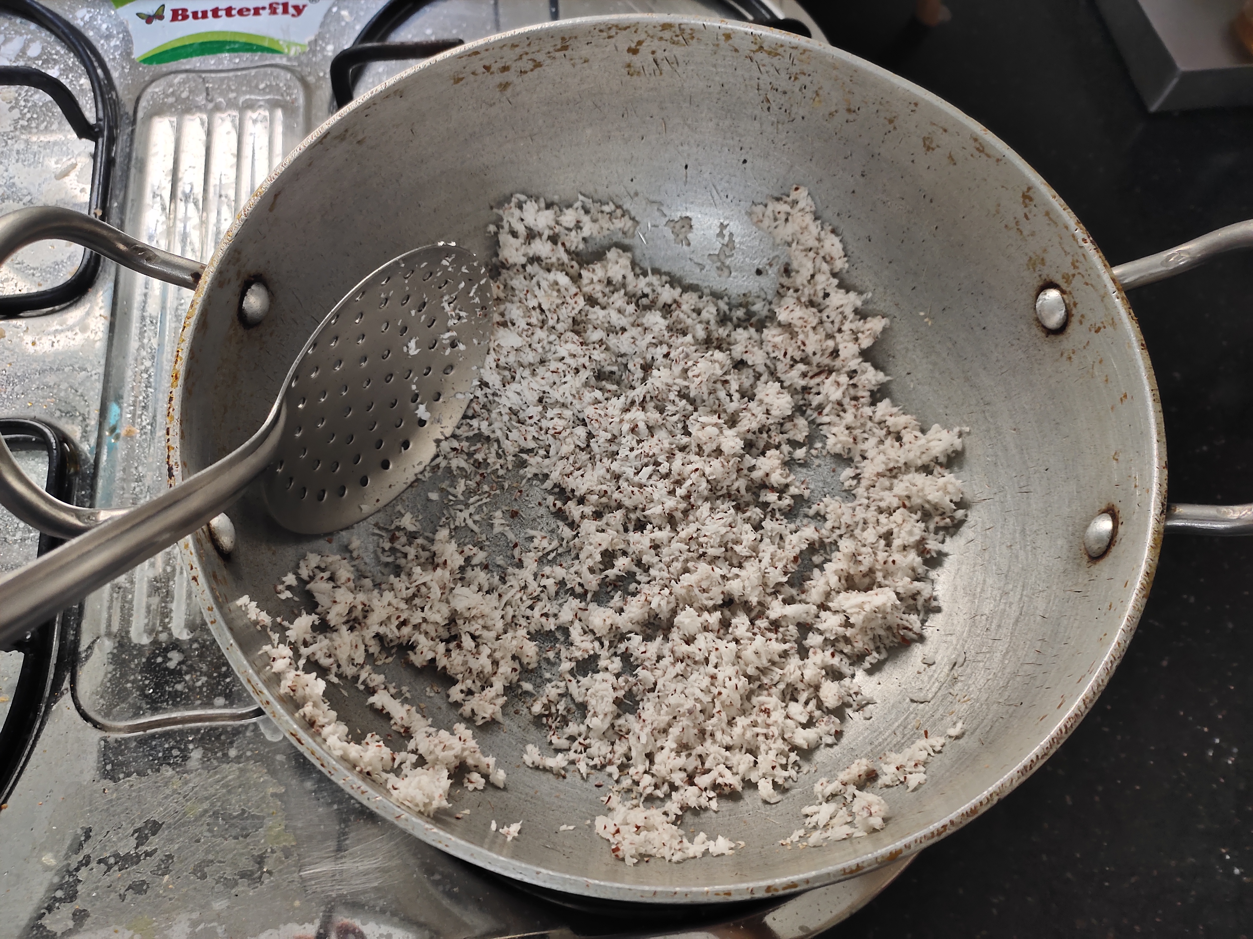 Dry roast Coconut scrapping until it becomes slight brown.