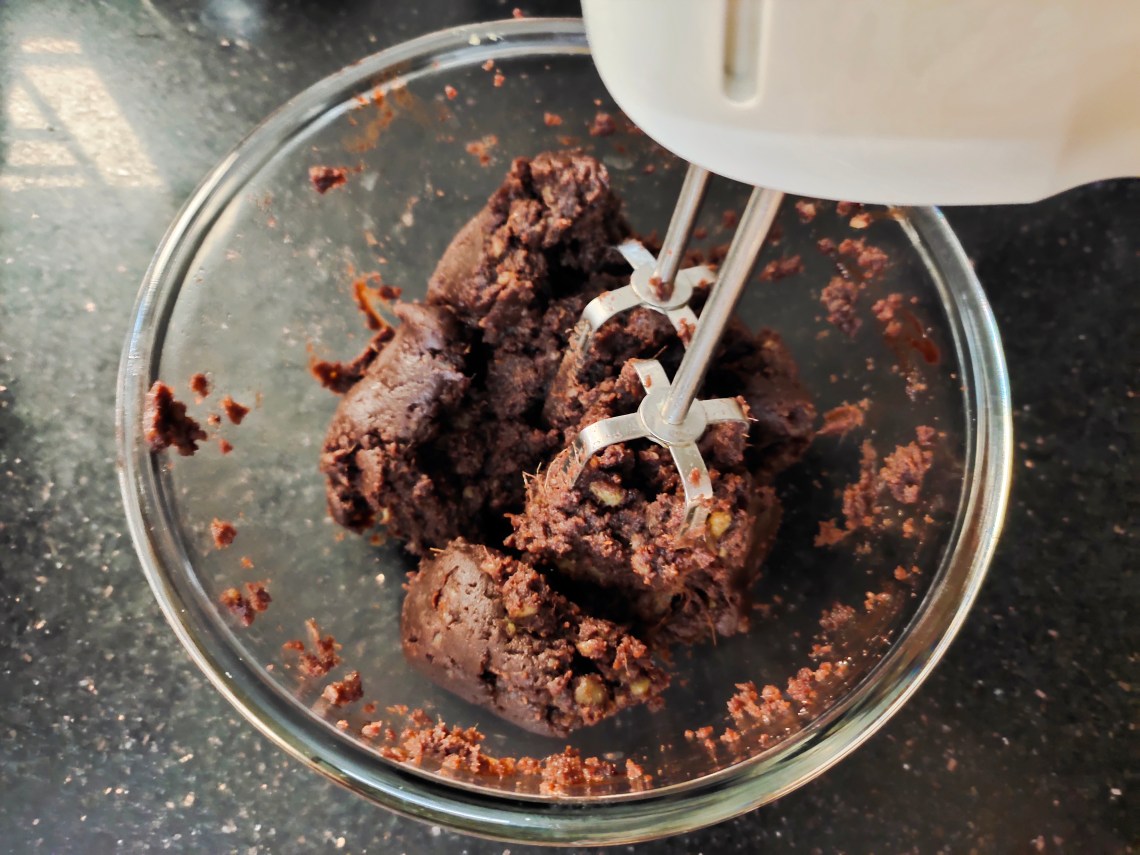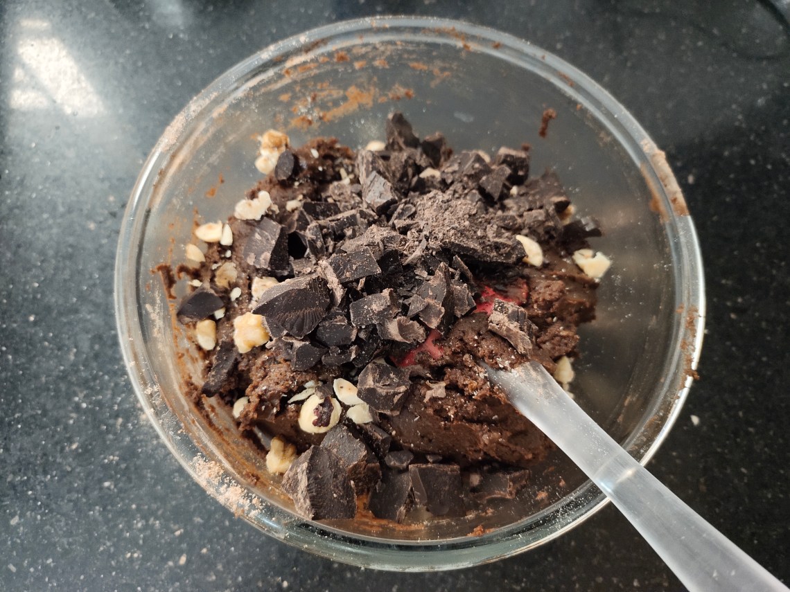 Add in the dark chocolate chunks (100gm)and nuts.