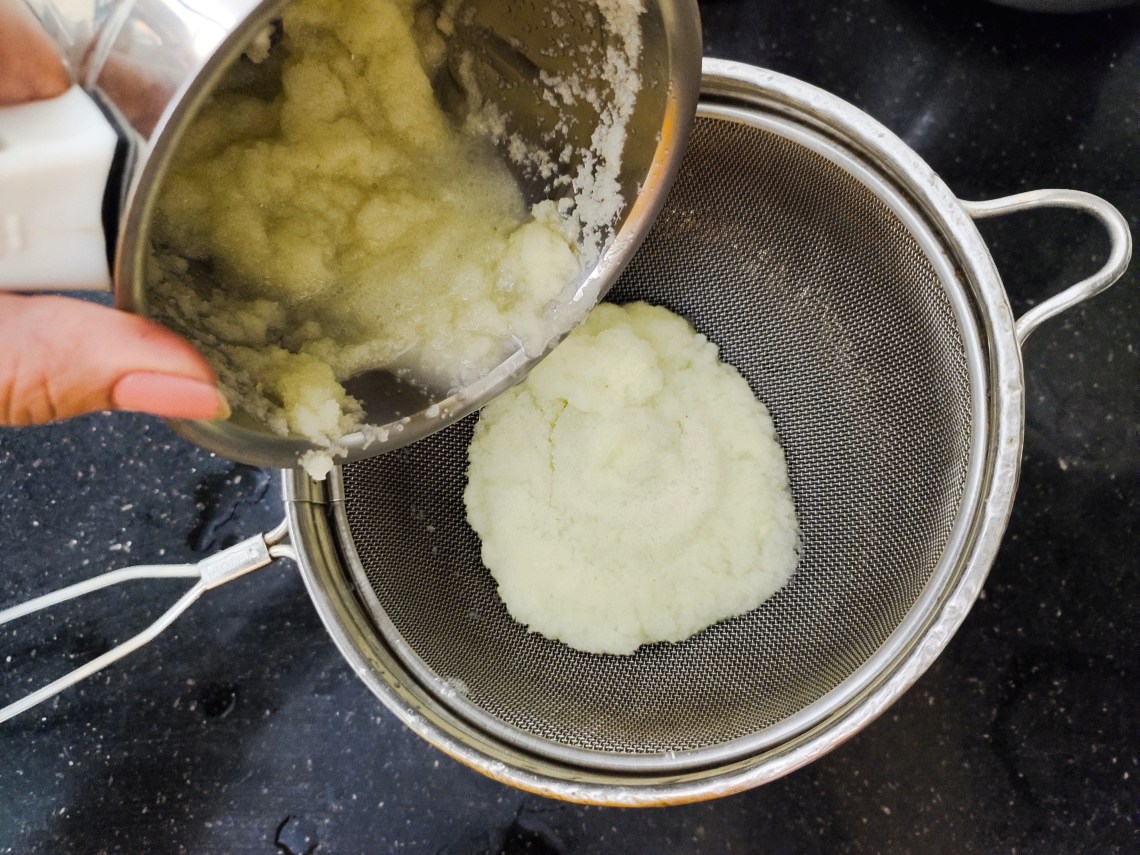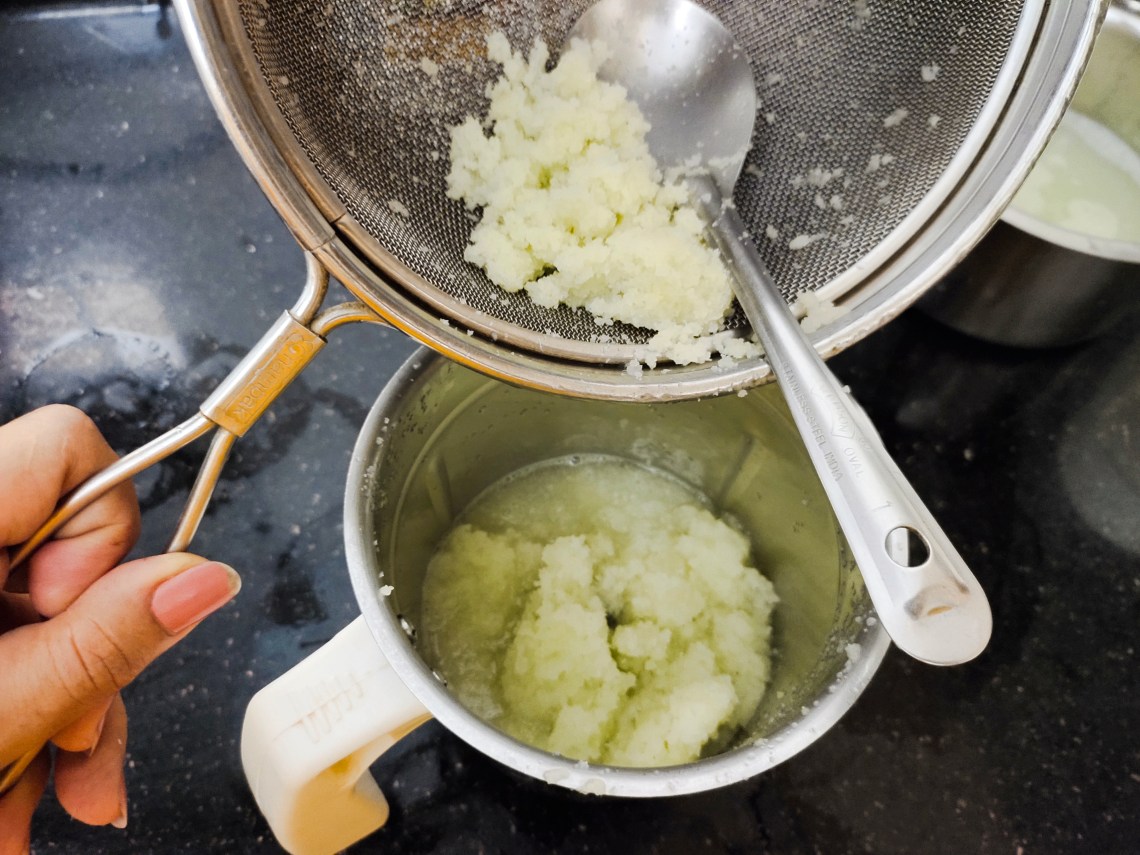 Add water to mixer jar blend and strain.
