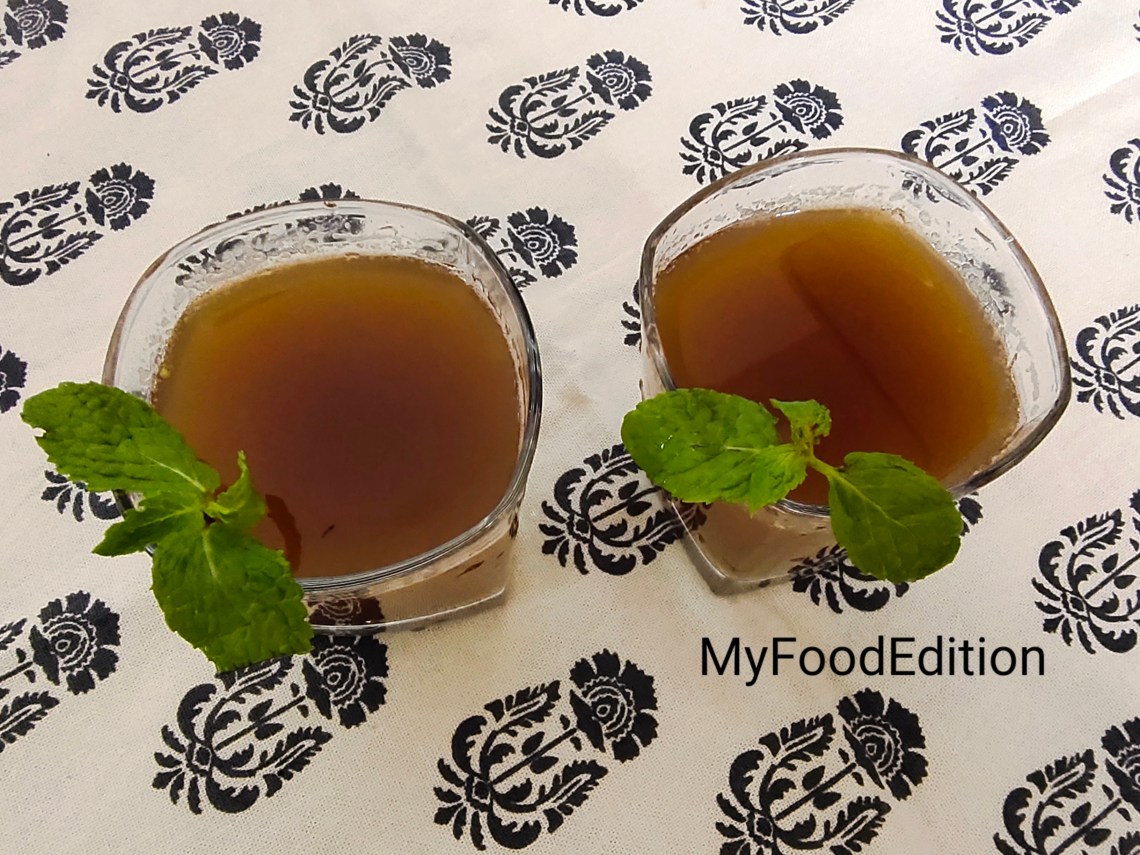 Garnish with mint leaves and serve in a glass.