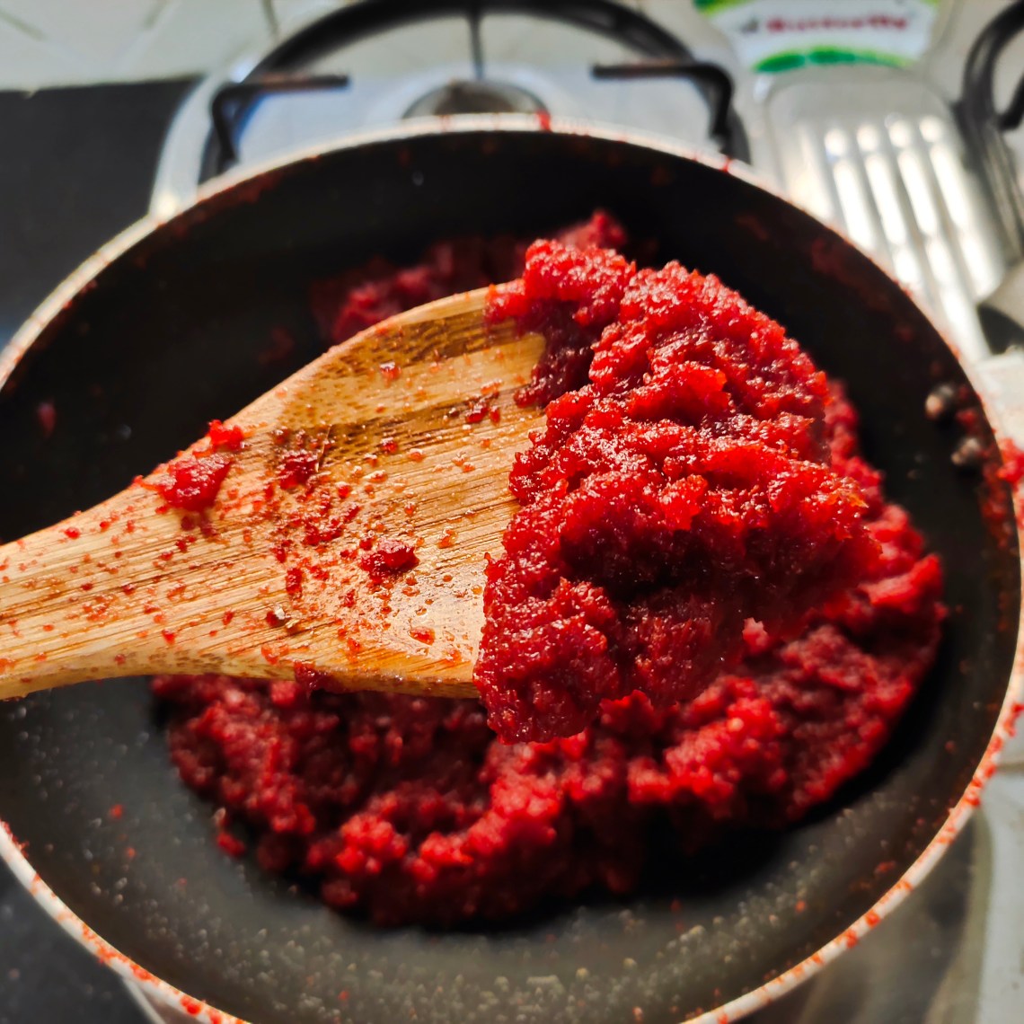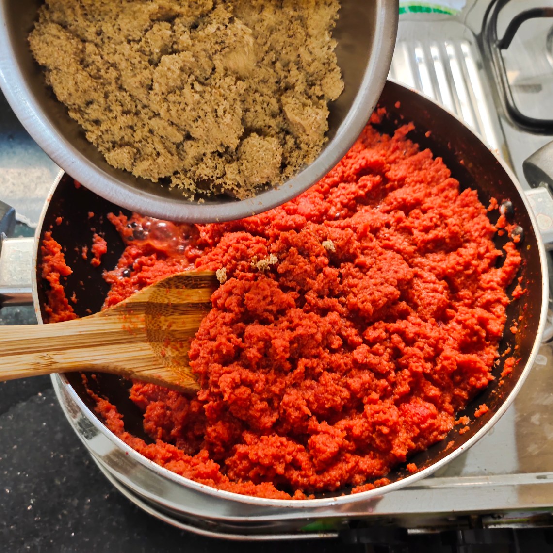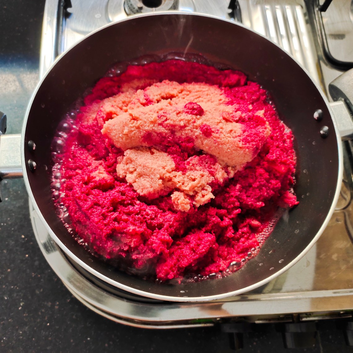 Carrot halwa is a mouth watering indian dessert which is loved by all age groups. While in grocery shopping, long red carrots attracted me and it striked me to make this halwa. Cutting veggies is an art ! When it comes to cooking, I like to chop and do everything on my own. Suddenly thought of giving a twist to the halwa by adding beets. It came out so delicious and colourful. The halwa resulted in an attractive dark red colour which is my favourite colour. With a dash of saffron and fried nuts halwa is outstanding. Every bite is flavourful and just melts in mouth. Its a big hit at my home. Tips for making quick halwa is given in notes so do read and try this healthy delicious and rich halwa for your loved ones and enjoy it !