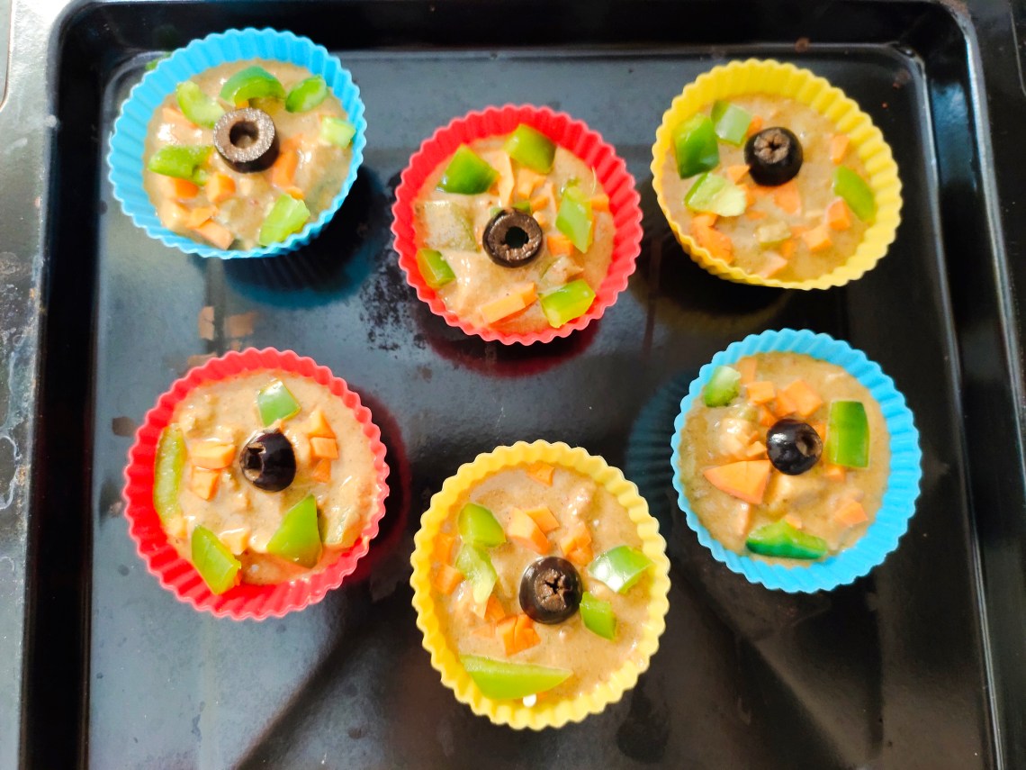 Savoury muffins are muffins with veggies, spices and herbs. These muffins can be had for breakfast, can be packed for lunch boxes or can be had as an evening snack. Sometimes we crave for spicy bakes or for our hunger pangs, these savoury muffins are a very good treat and healthy too. Bajra flour (Pearl millet/ kambu) is gluten free and has numerous nutritive value in it so, I try to use bajra in my day- today cooking and baking. These muffins are packed with proteins, vitamins and minerals which are very essential for a meal. They are perfect crowd pleasers. You can try it for your potluck and summer parties. Do bake these savoury muffins without fail for your family! Happy baking!