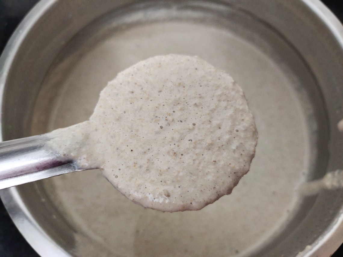 When it comes to rim of the bowl, mix it and make idlis or refrigerate the batter for later use.