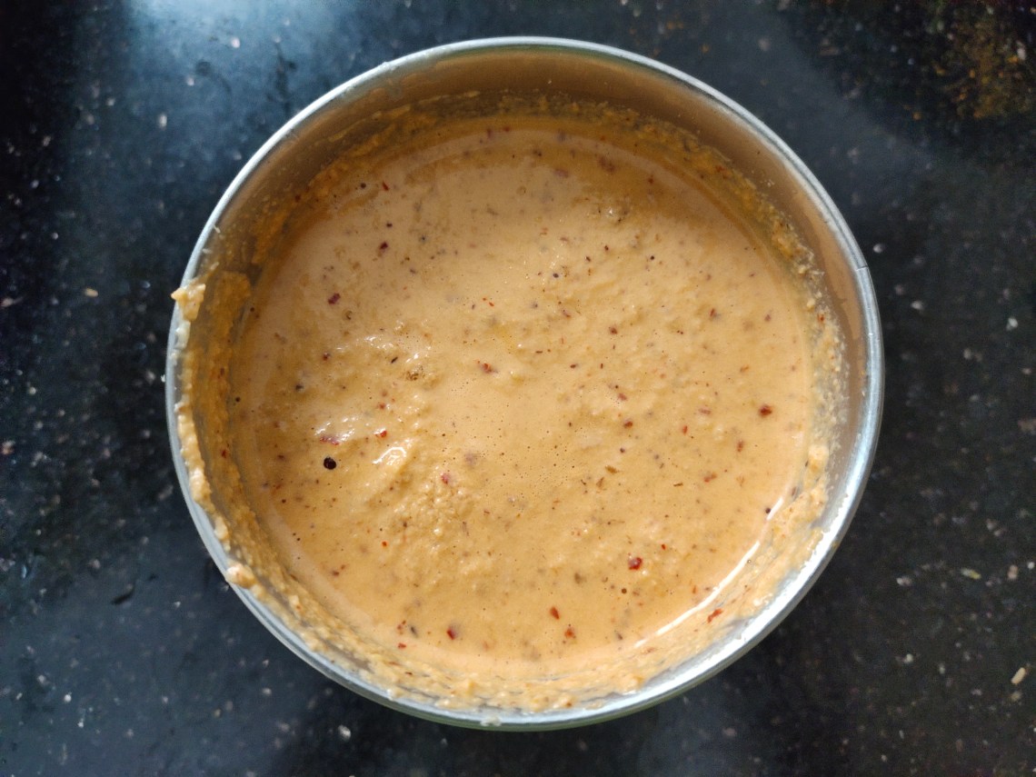 Blend the roasted items to a fine paste using water.