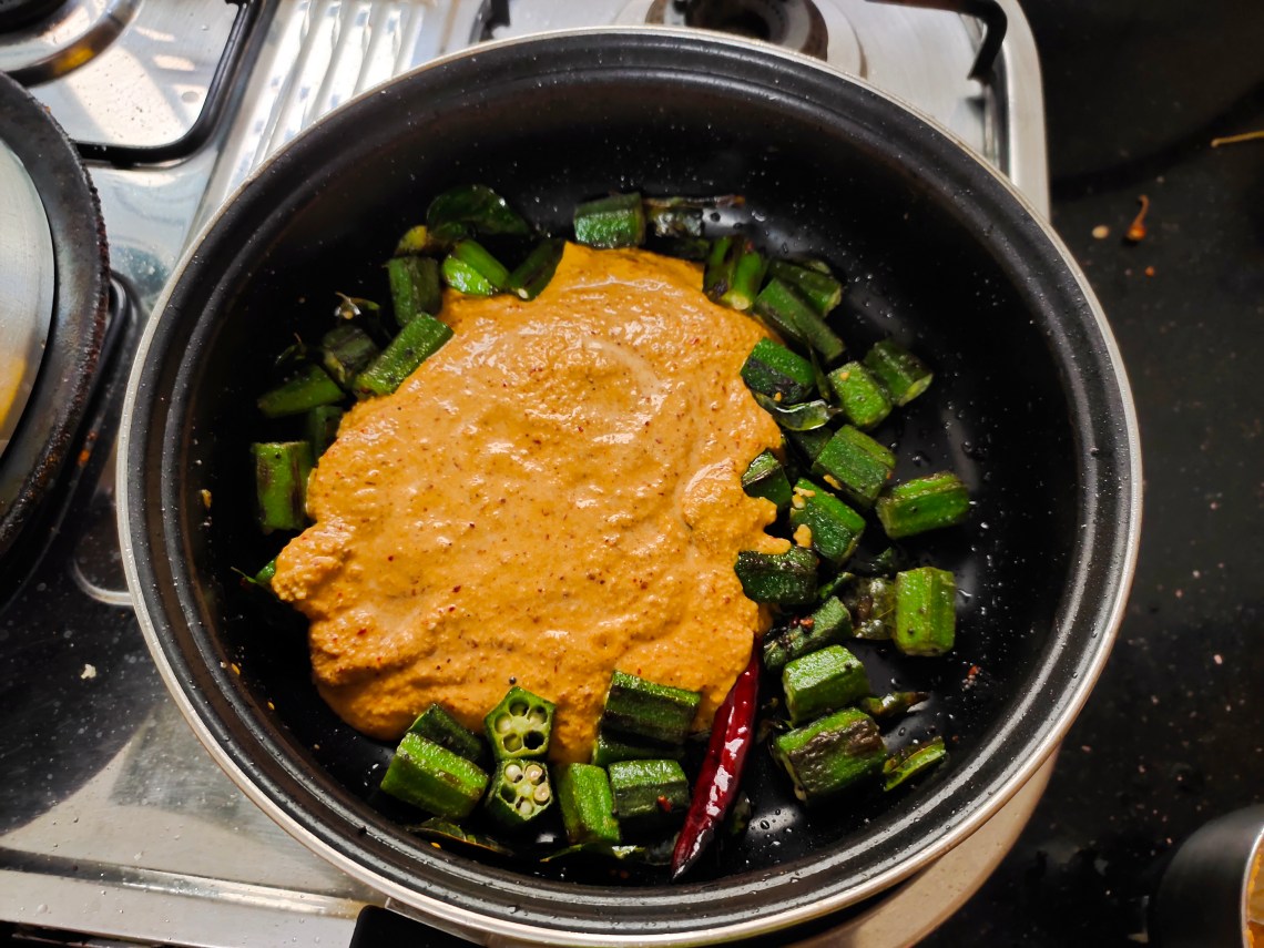 Now add chopped ladies finger and saute until half cooked.