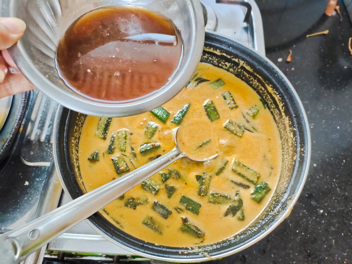 Finally add the tamarind juice and salt.