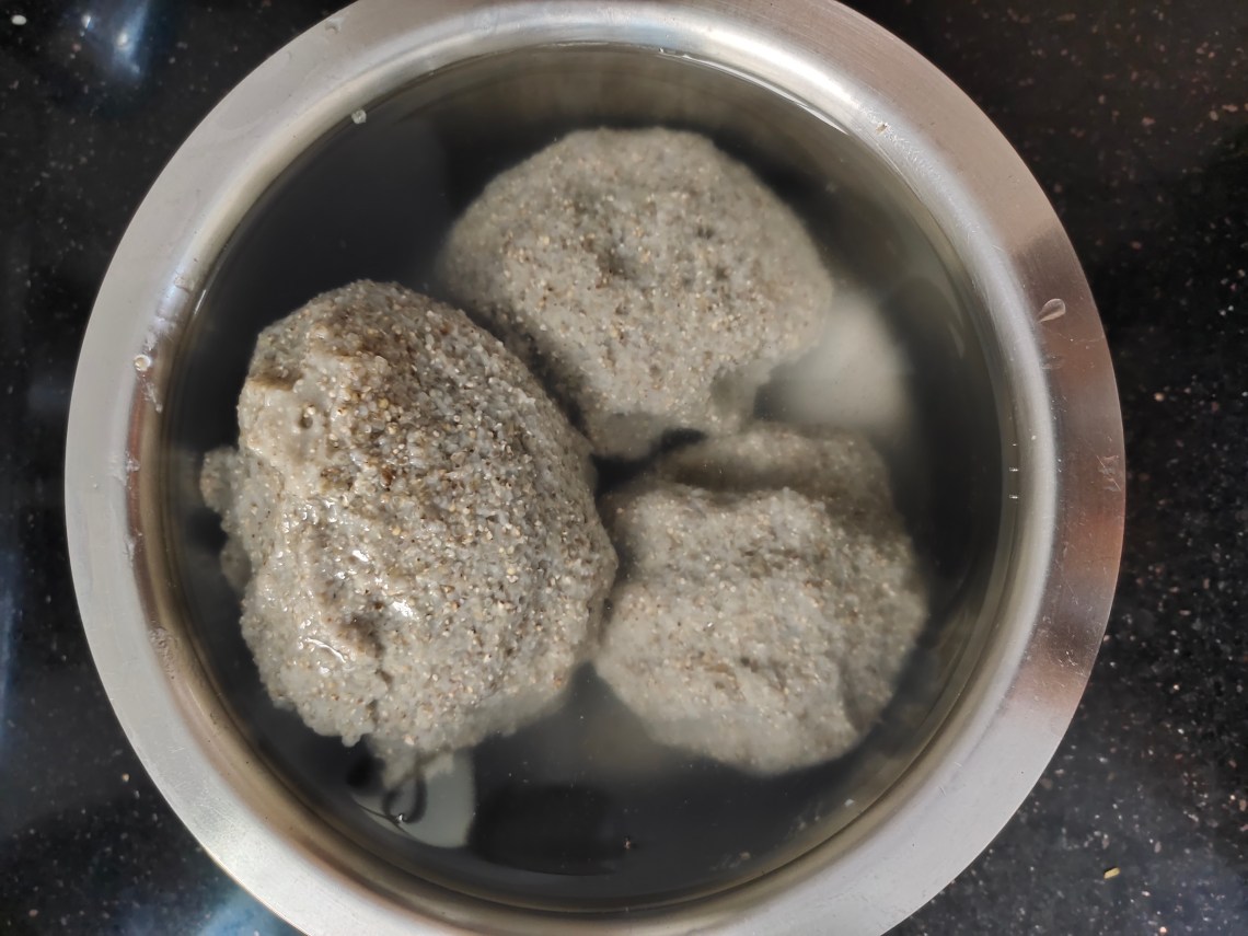 In a bowl of drinking water drop the cooked bajra balls.