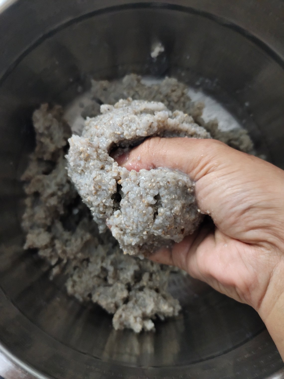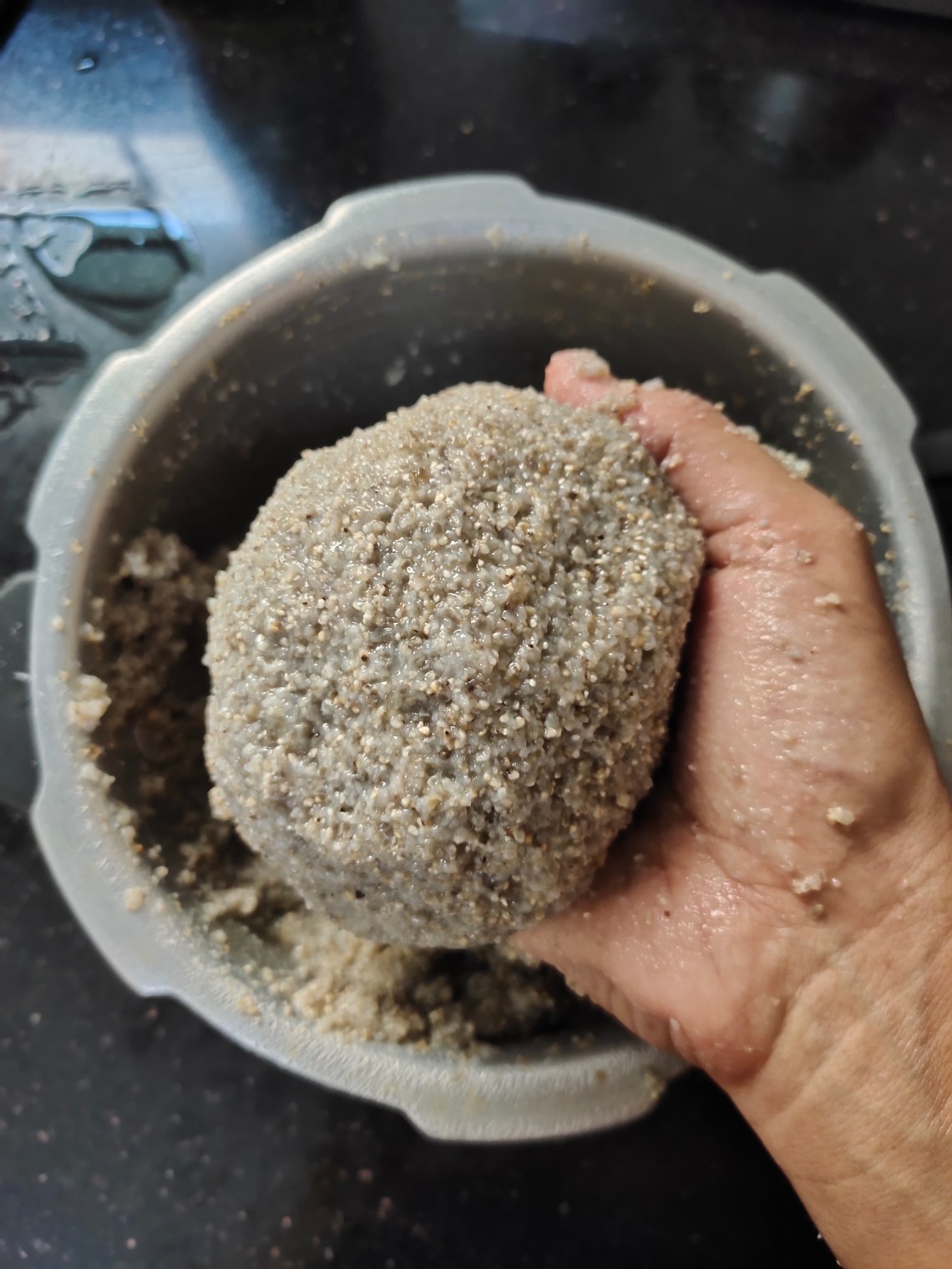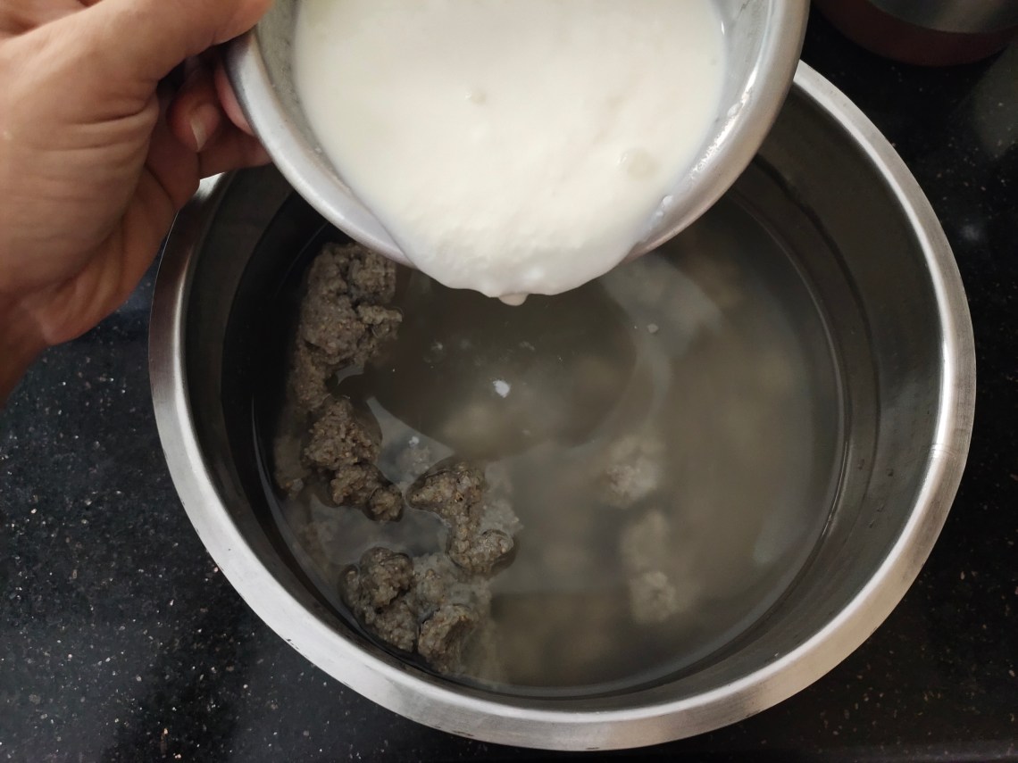 Cooked bajra is made into balls and immersed in water and refrigerated. Whenever needed according to requirement it can be dissolved in water, add curd and salt and serve. Excess can also be refrigerated. Next day the porridge ferments and tastes awesome. Naturally fermented foods are good for gut health.