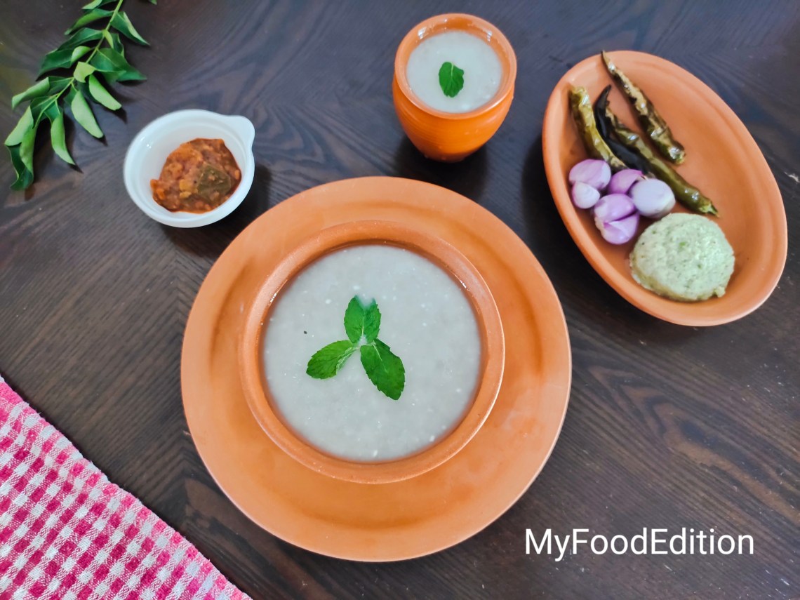 Usually pearl millet porridge is served with shallots and chillies. My mom used to fry the green chillies in coconut oil with salt drizzled. I tried it with raw mango chammandi ( thogayal/ chutney) and it was heavenly. Raw mango chutney (recipe updated below) goes well with rice gruel too. My hubby likes gruel with mango pickle. Kids love it with fried chillies.