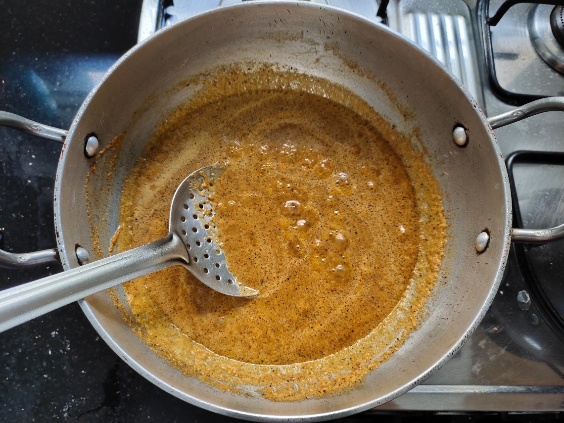 Saute well until the raw smell goes off completely.