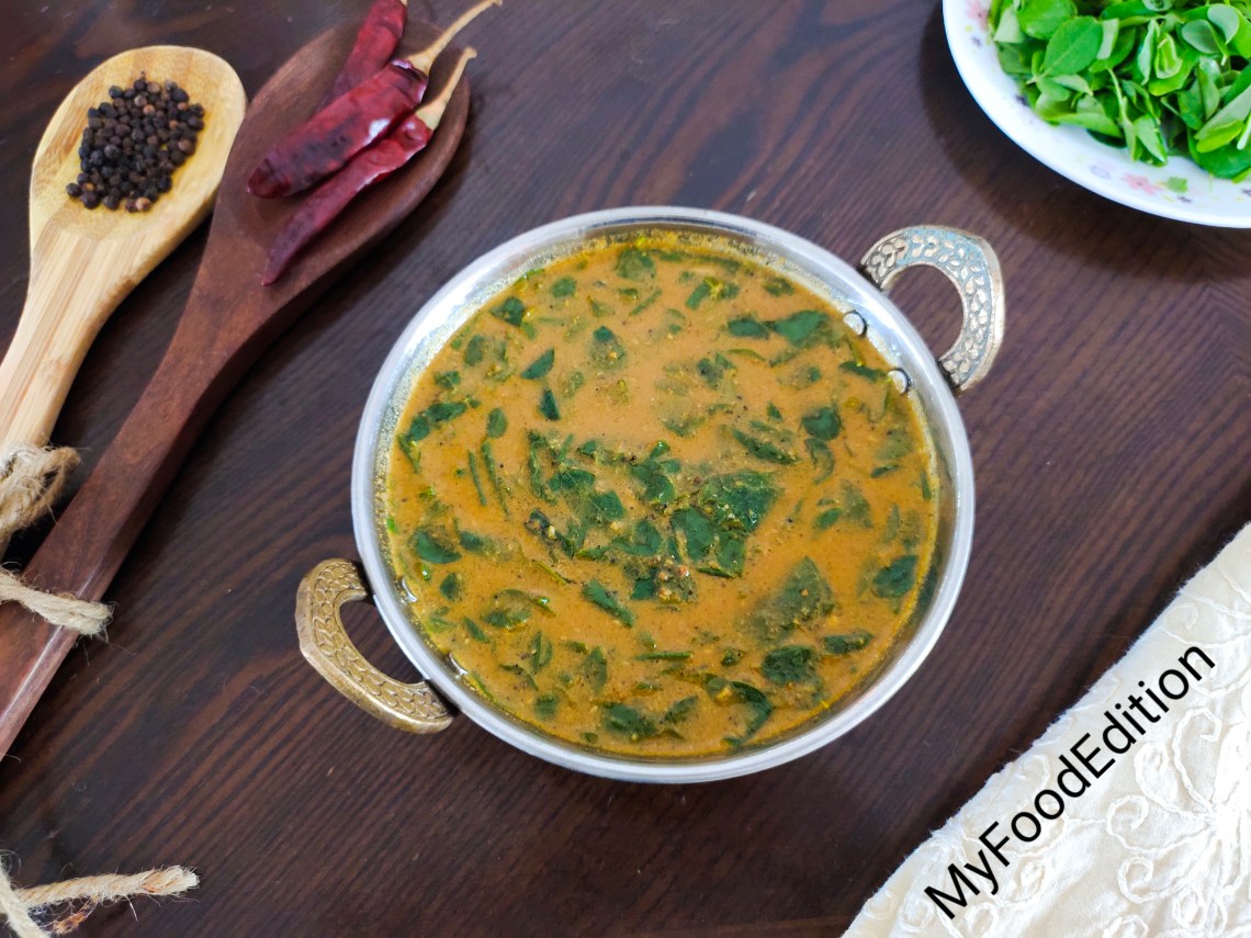 Drumstick leaves arachuvitta kuzhambu (curry) is a traditional dish made by blending the masala fresh thereby making it so flavourful. Drumstick leaves are rich in iron and very healthy for all age groups. Whenever I go for grocery shopping, would search for drumstick leaves first then goes my eyes to rest of the veggies. With a single bunch of drumstick leaves, I could plan for the whole week so numerous dishes can be made using it. Whenever I had cold and cough my mom used to make this kuzhambu and it is so comforting one. This kuzhambu requires no tempering. So simple dish and healthiest one too. Aroma of coconut oil enriches the flavour and it tastes better than any other oil. Do try it for your family and stay healthy as always !