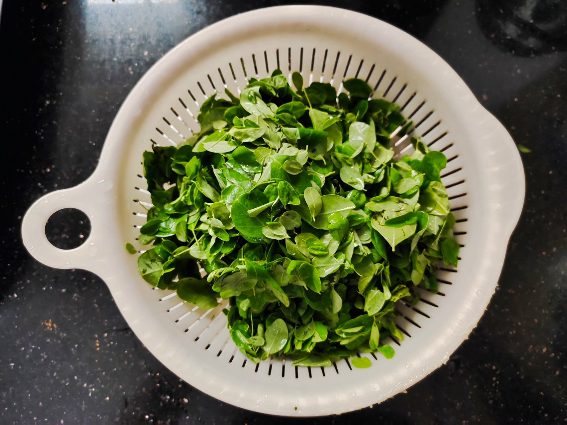 Wash the drumstick leaves, drain it and keep it aside.
