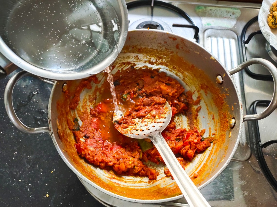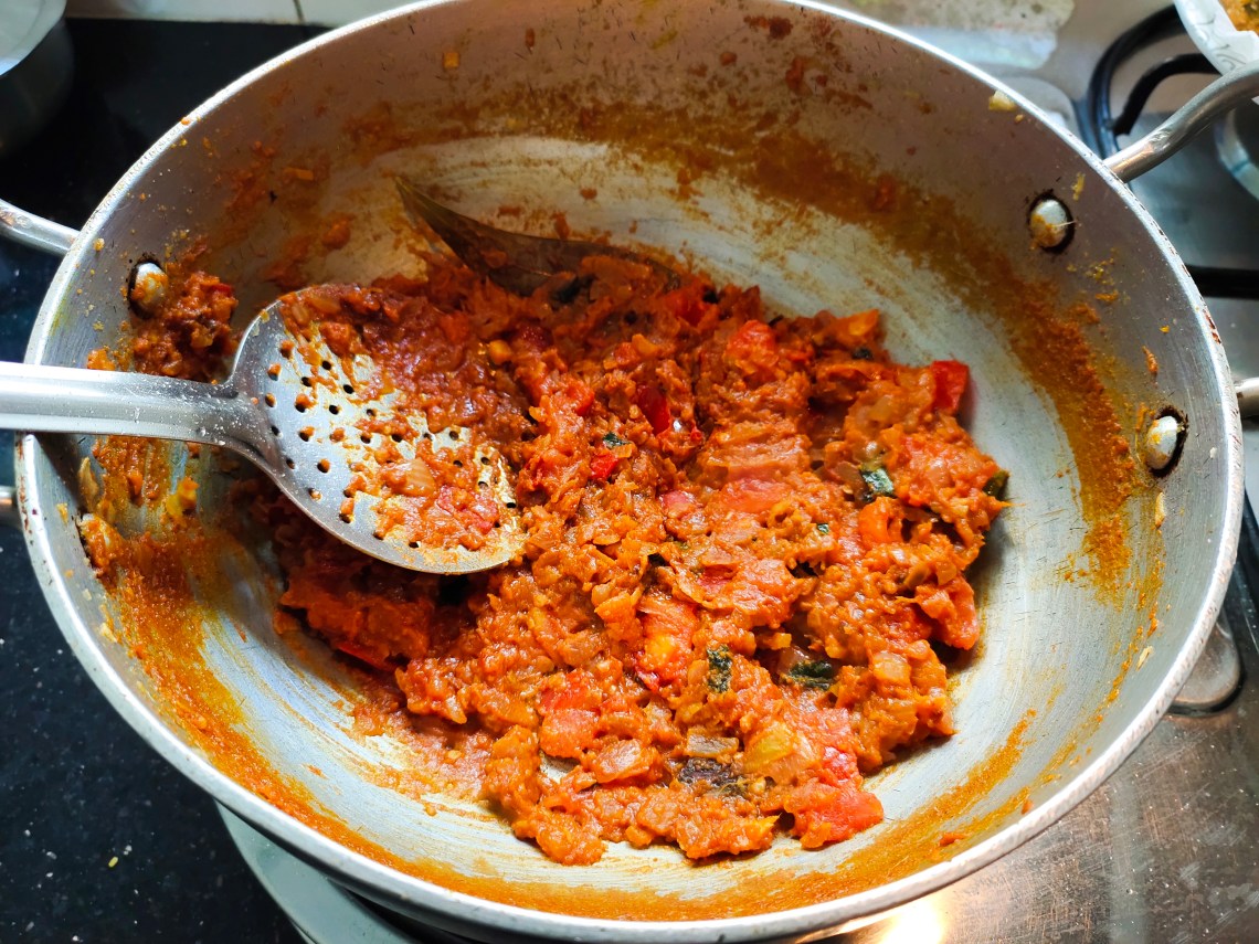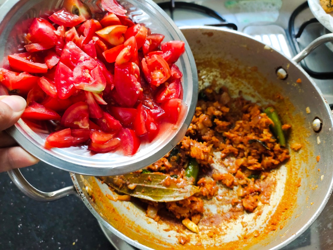 Saute the tomatoes well till mushy.