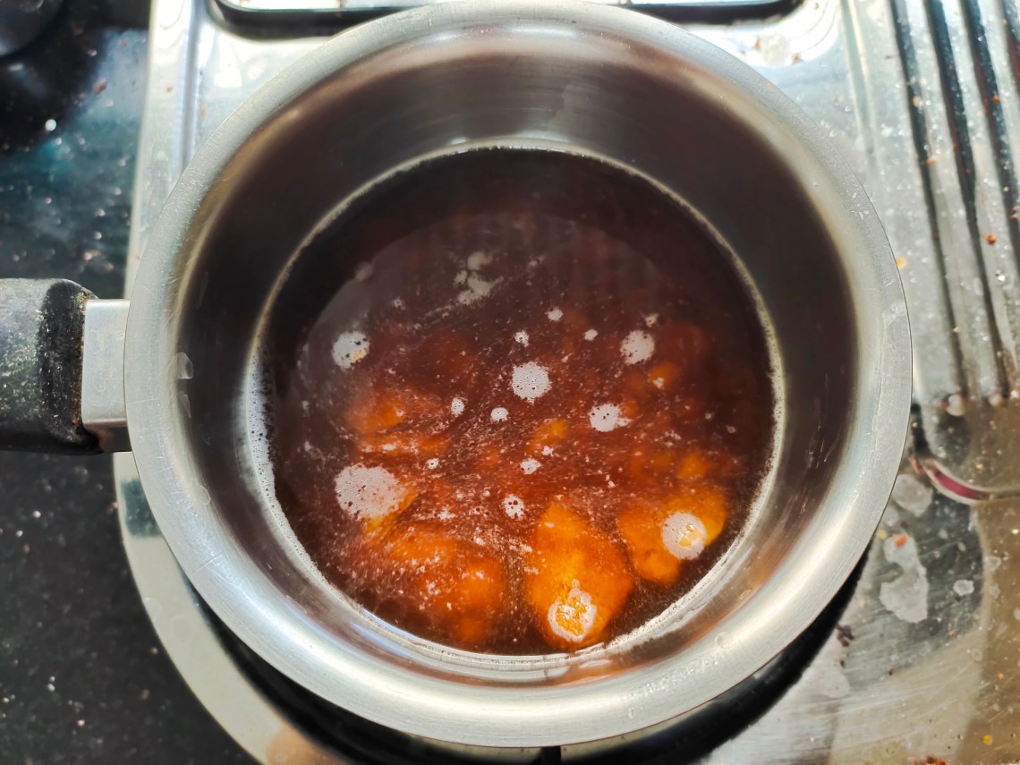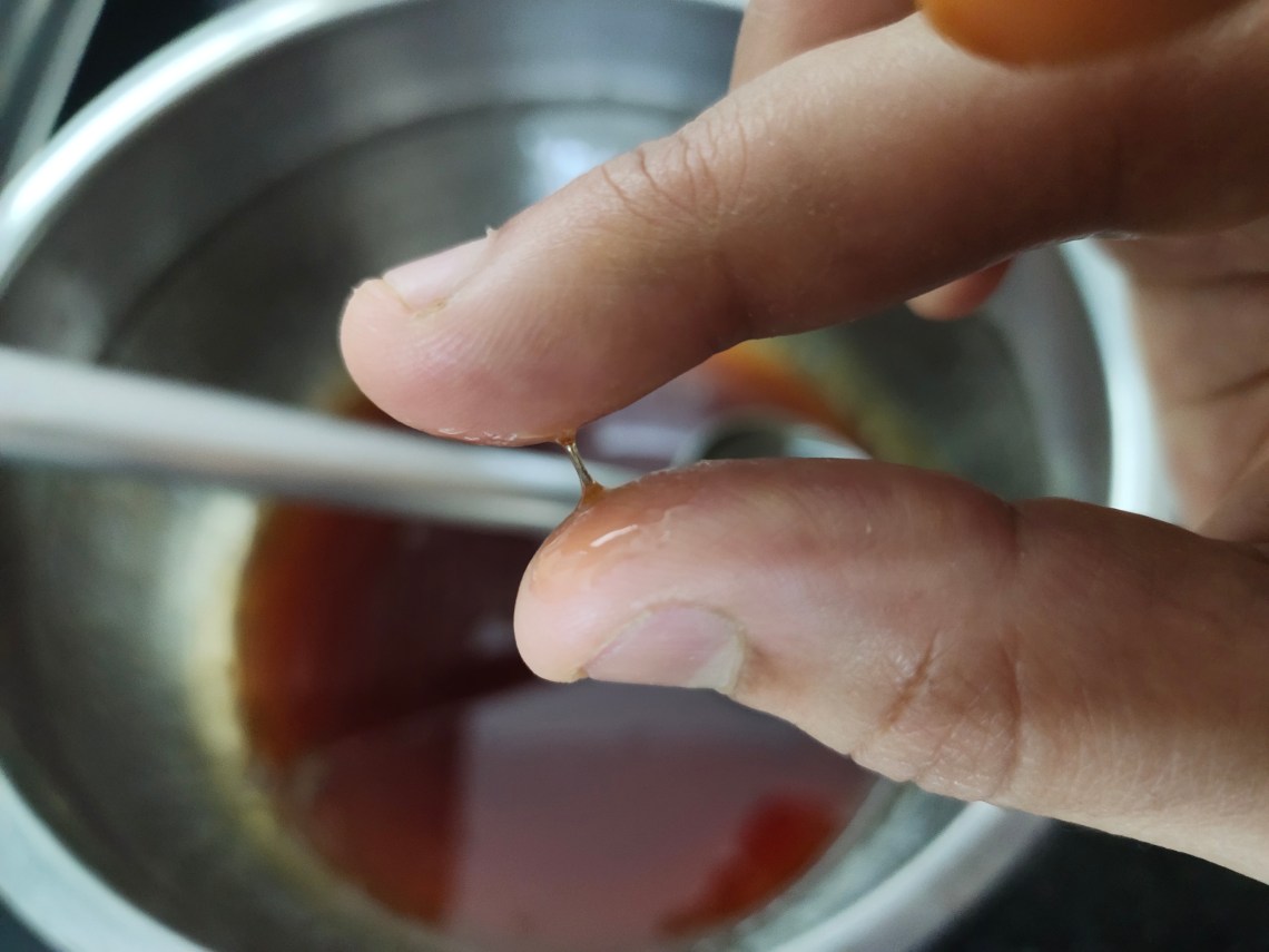 Touch the syrup and check with your fingers. Let it boil until 1 string consistency.