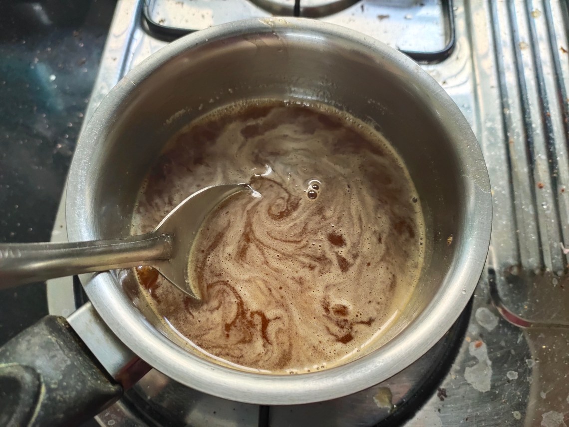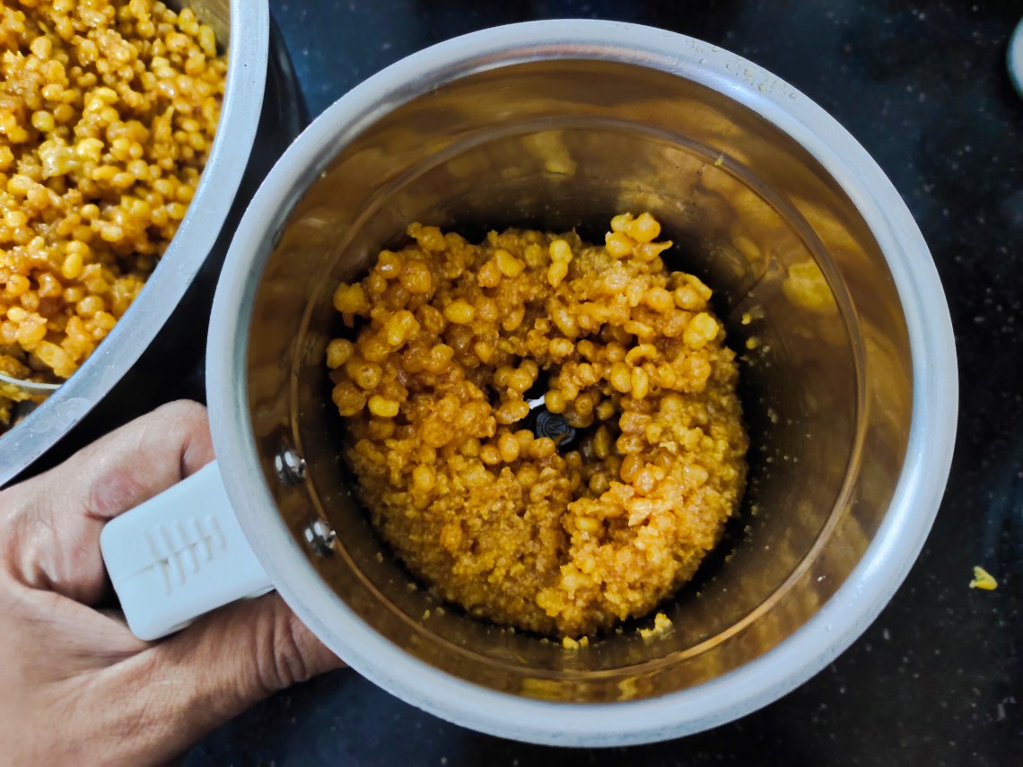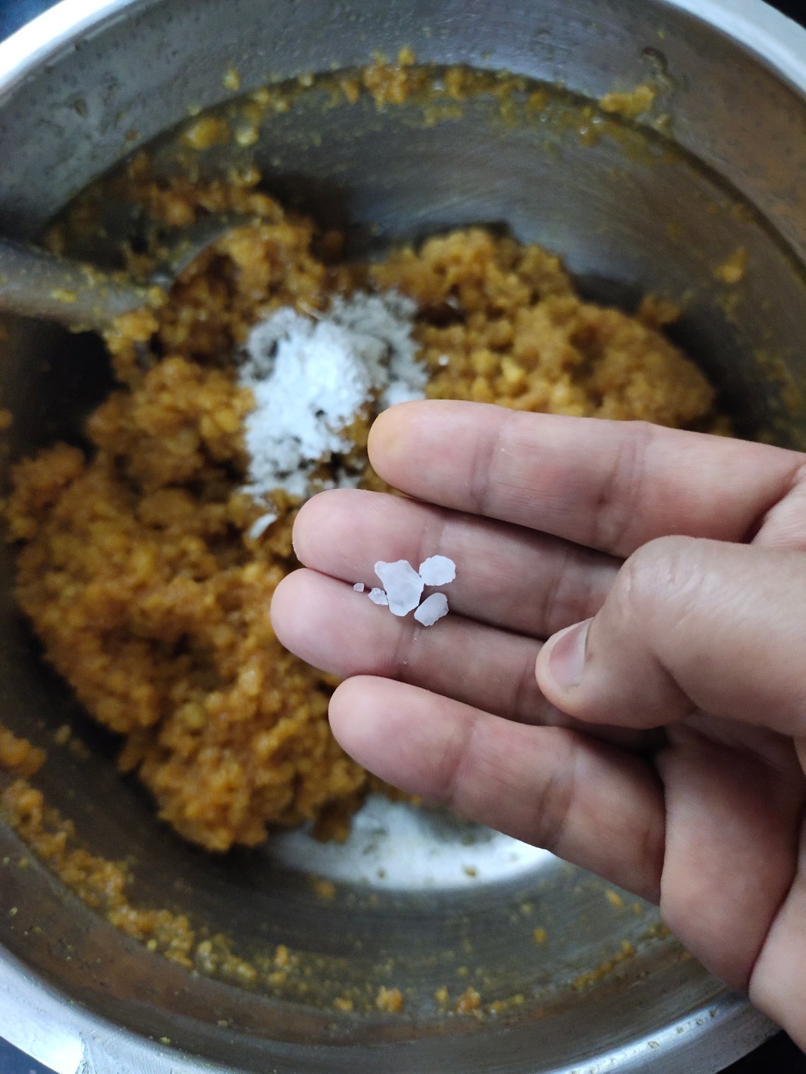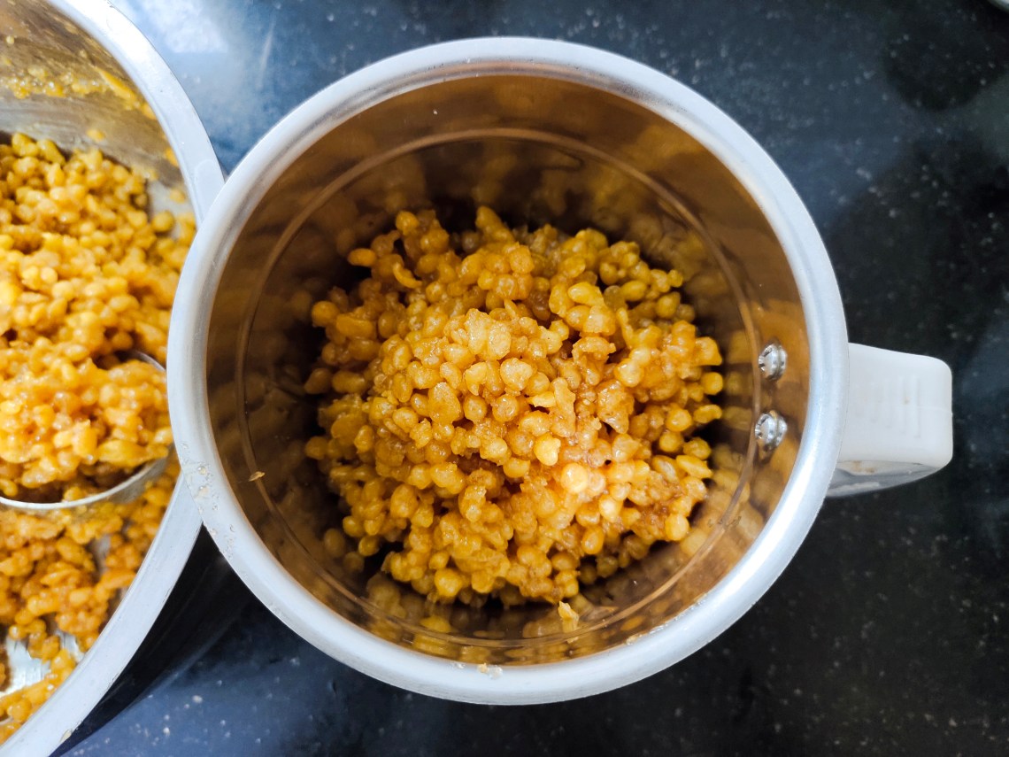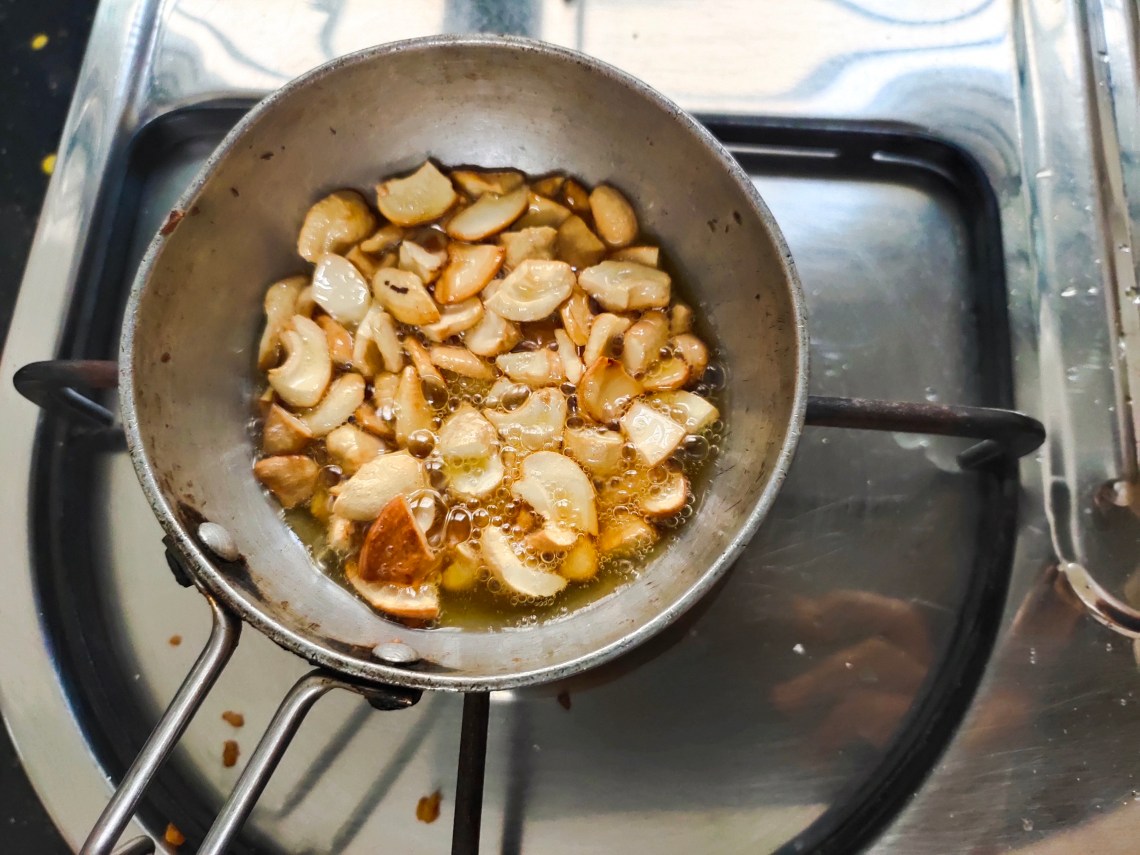 Heat the pan and stir it until Jaggery dissolves and stop the flame.