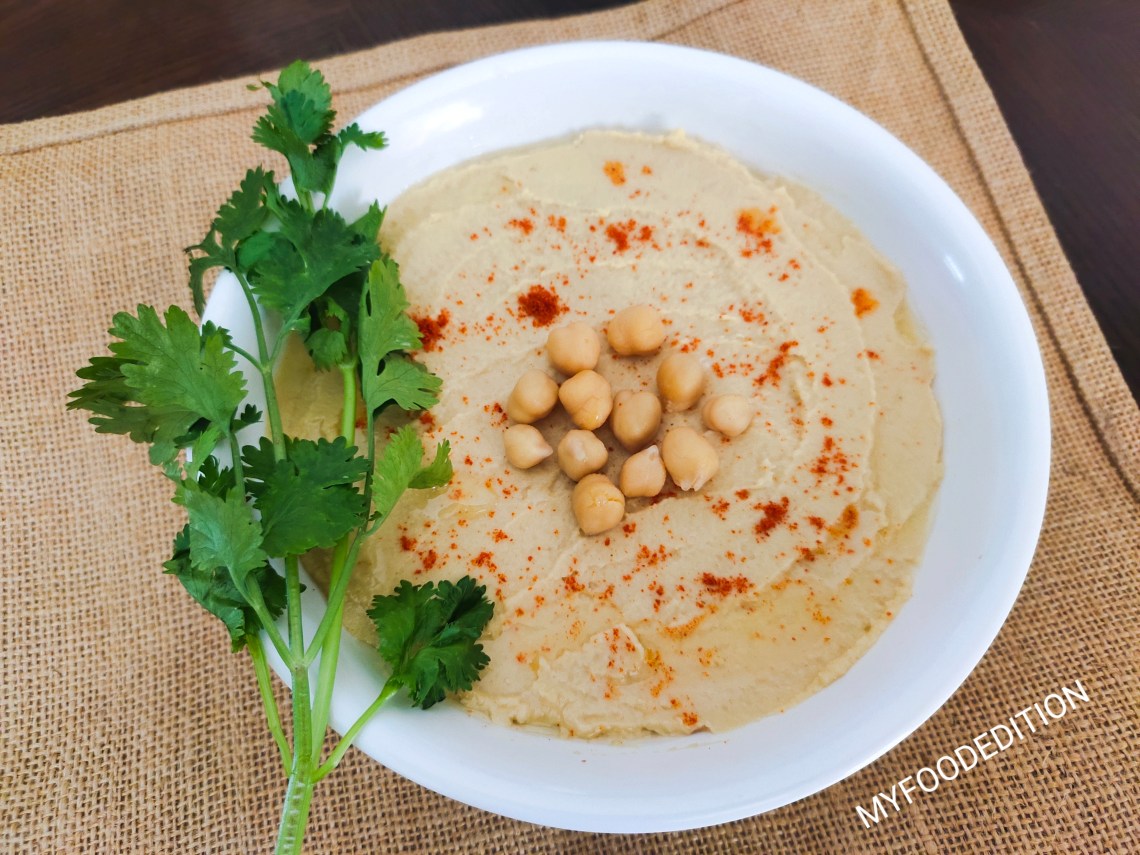 Hummus is a super smooth creamy flavourful dip used in mediterranean cuisine and streetside fast foods. It’s so healthy protein rich cream used as a dip or as a spread. Chickpeas the main ingredient gives he creamy texture to hummus. Tahini enhances the flavour of hummus which is nothing but the ground mixture of dry roasted white sesame seeds, olive oil and salt. Hummus is ridiculously easy to make at home and lasts for few weeks in refrigerator. Fresh lemon juice gives excellent taste to hummus.