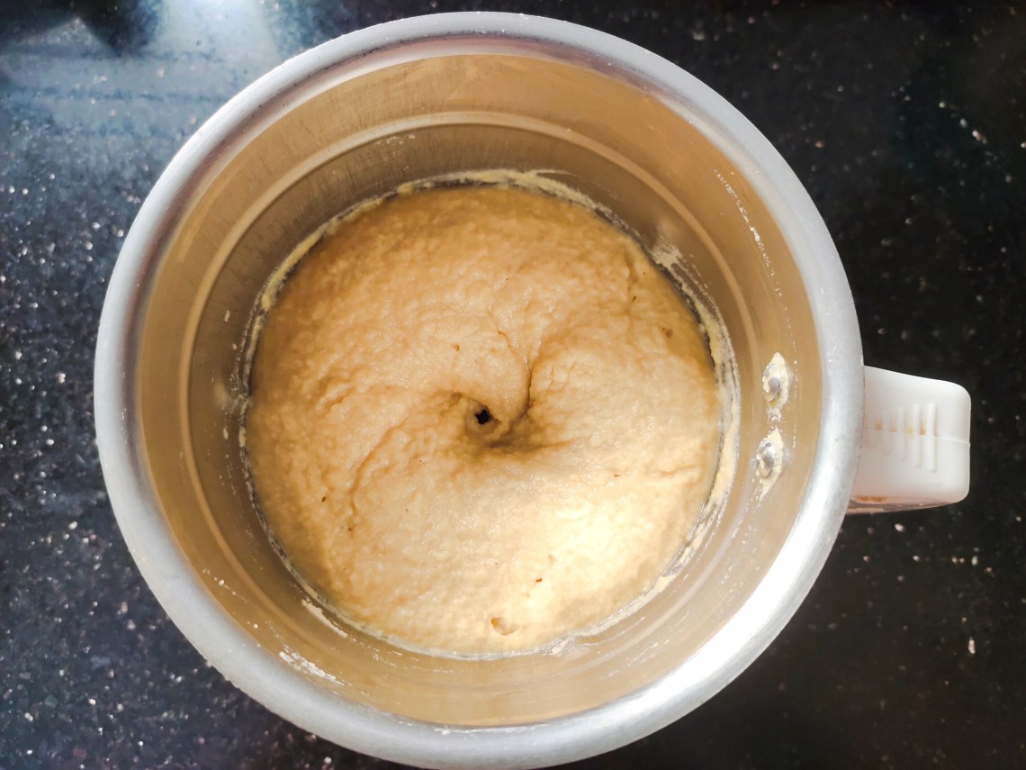 Add 1 to 2 tsp water ( water used to cook channa) and grind it to a thick paste without any lump.