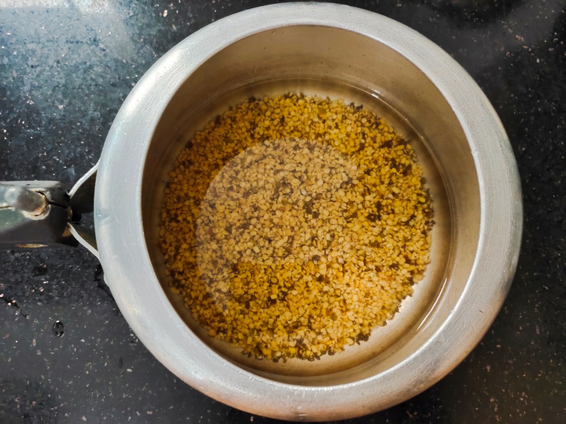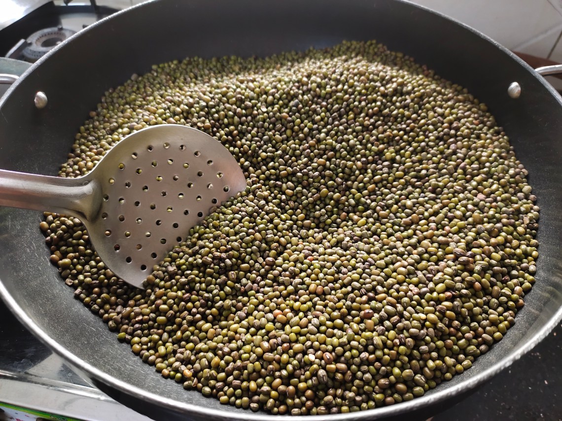 Organic moong dal is dry roasted in medium flame until the colour changes.