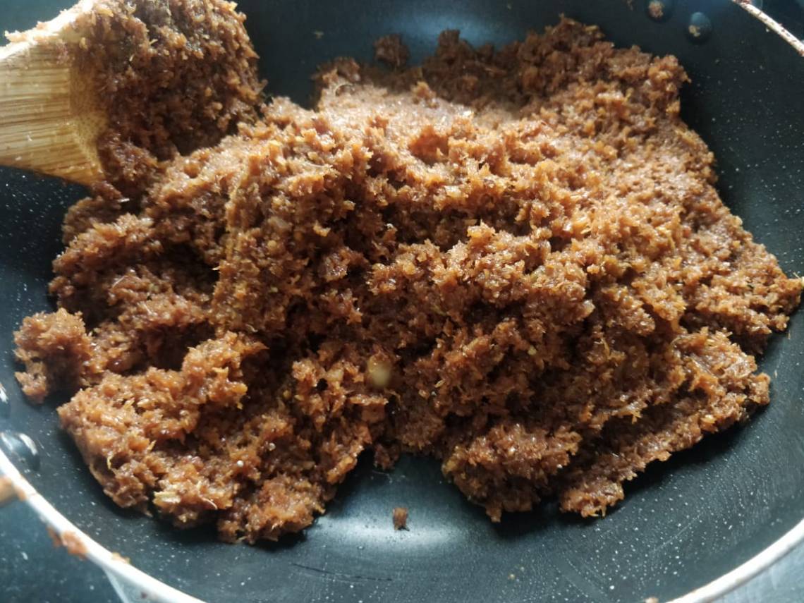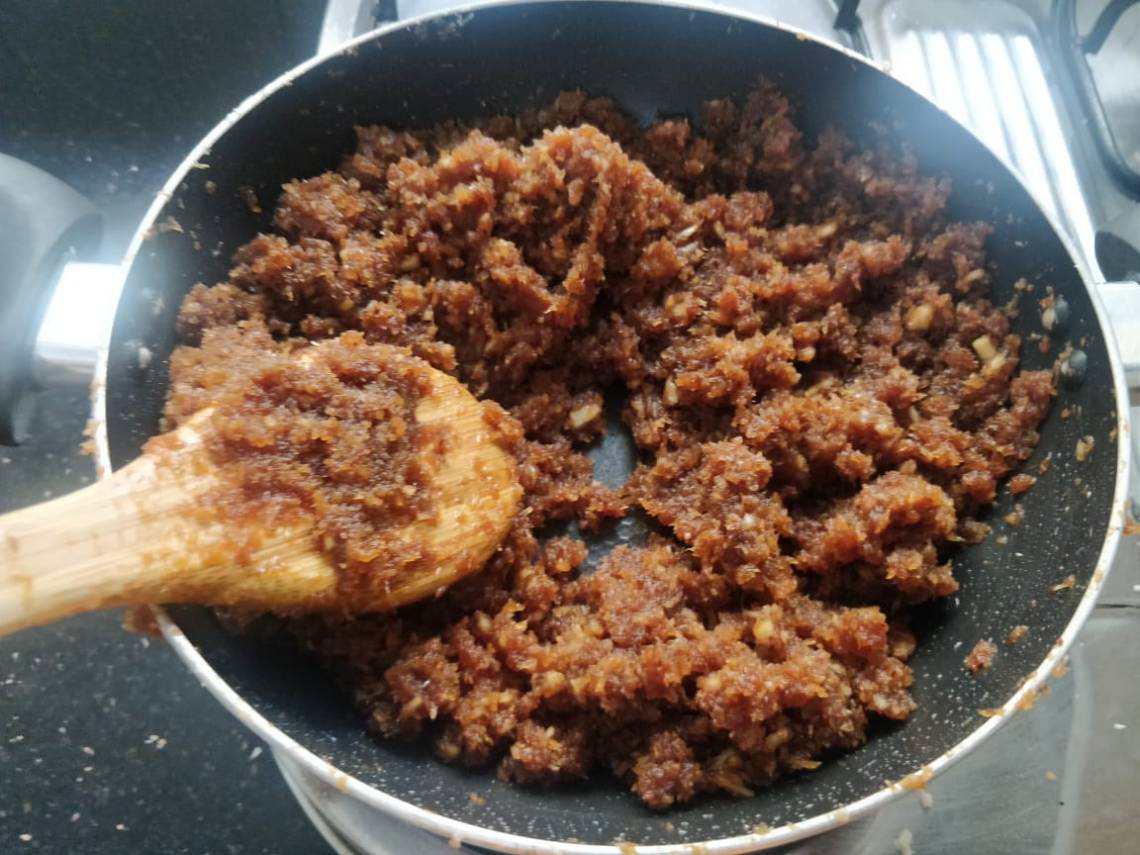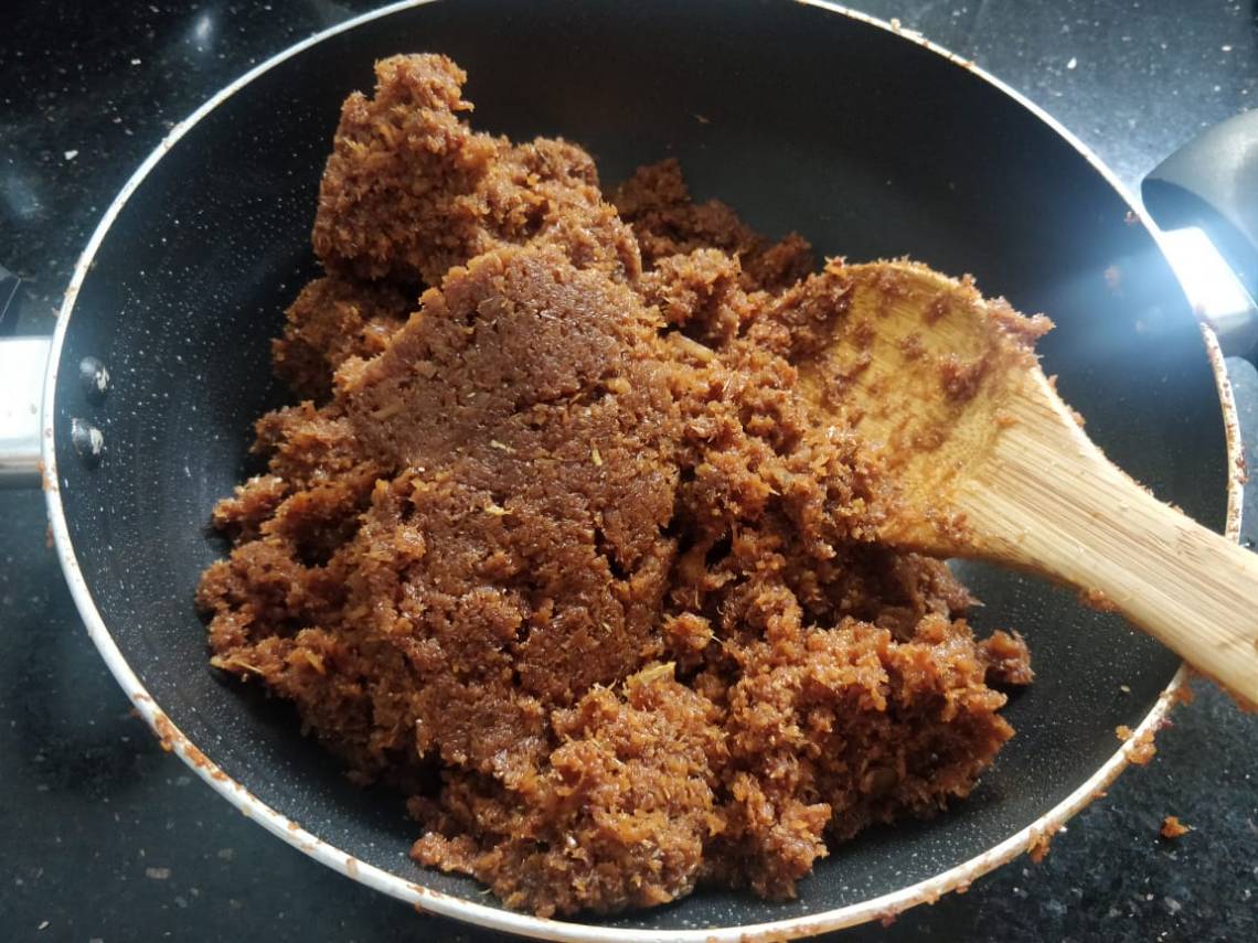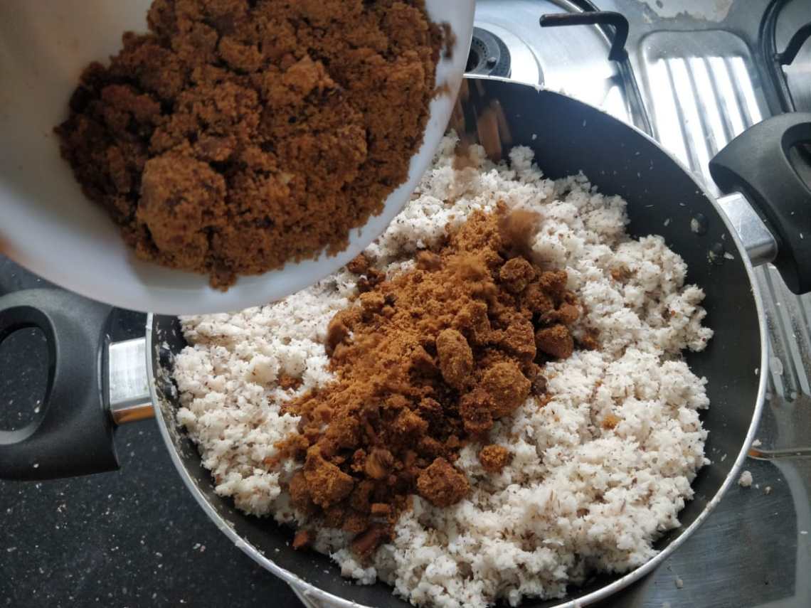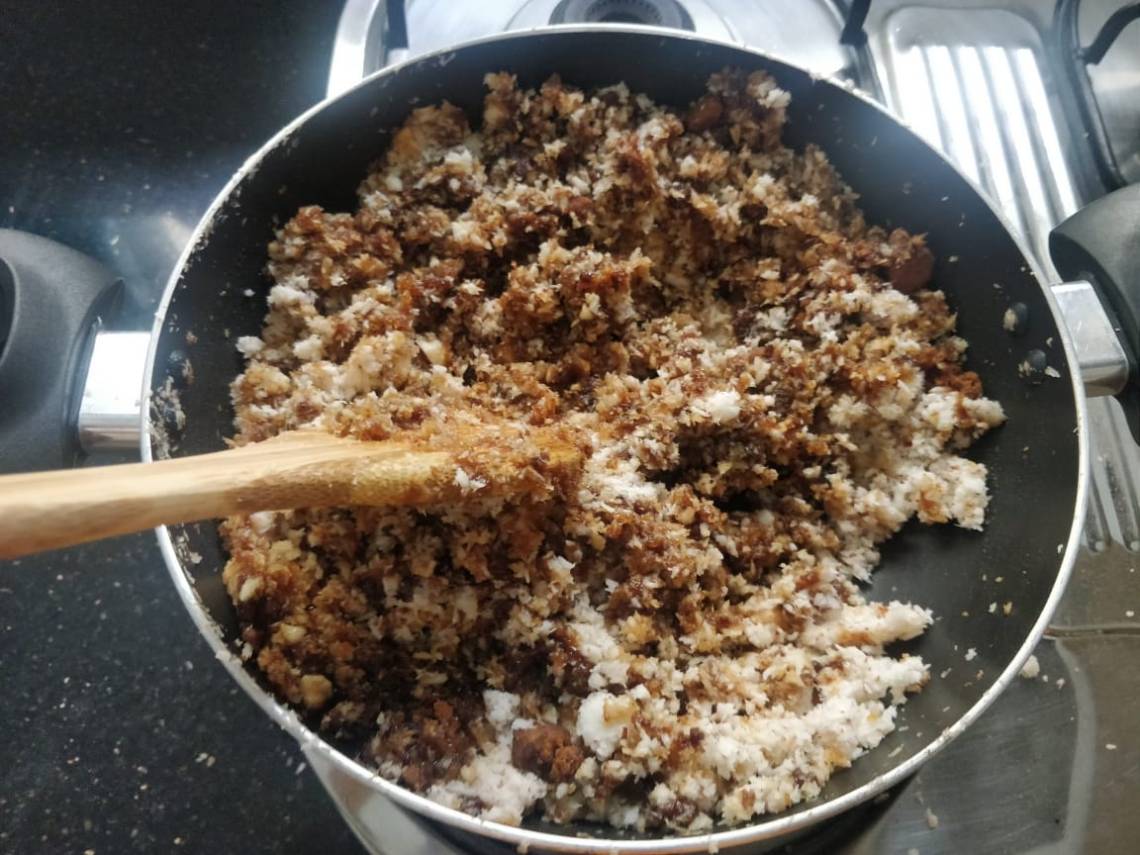 Heat a tablespoon of ghee in a non-stick pan and add grated coconut.