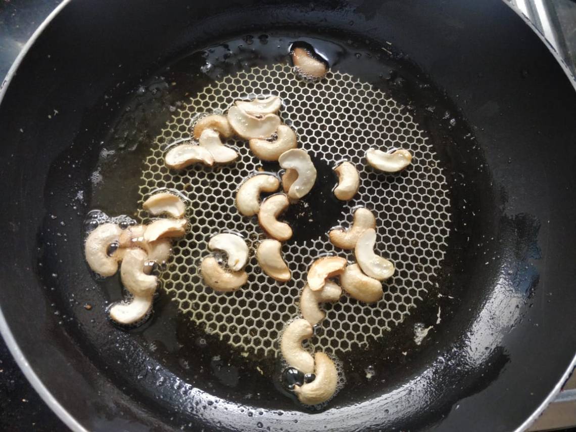 Heat a tablespoon of ghee and roast broken cashews till golden.