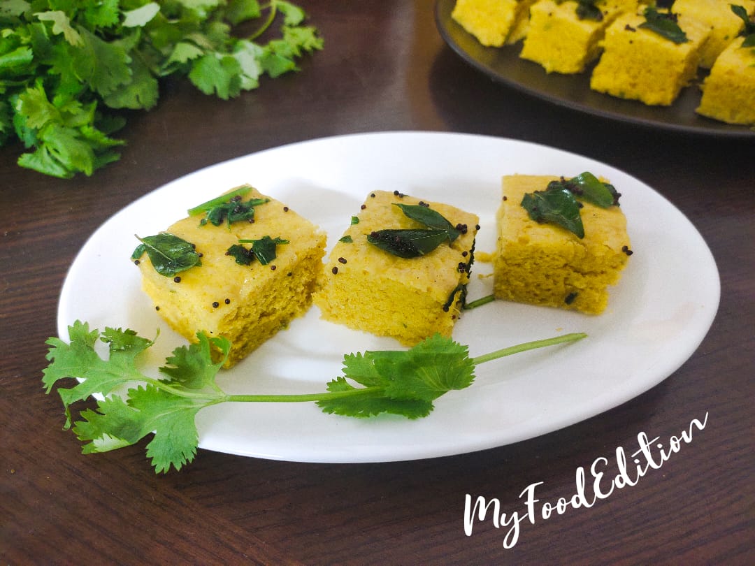 Dhokla can be garnished with coriander leaves and served with coriander / mint chutney for authentic taste. Its stays good in refrigerator for 2 days.