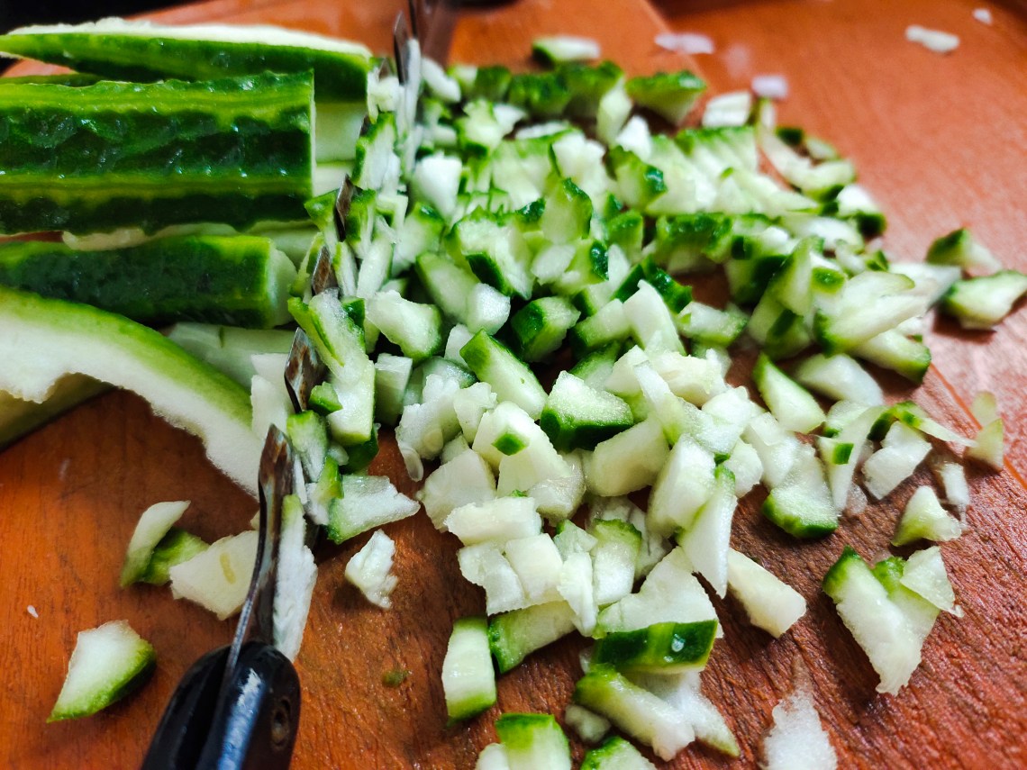 Chop the ridge gourd finely to make the curry dense.