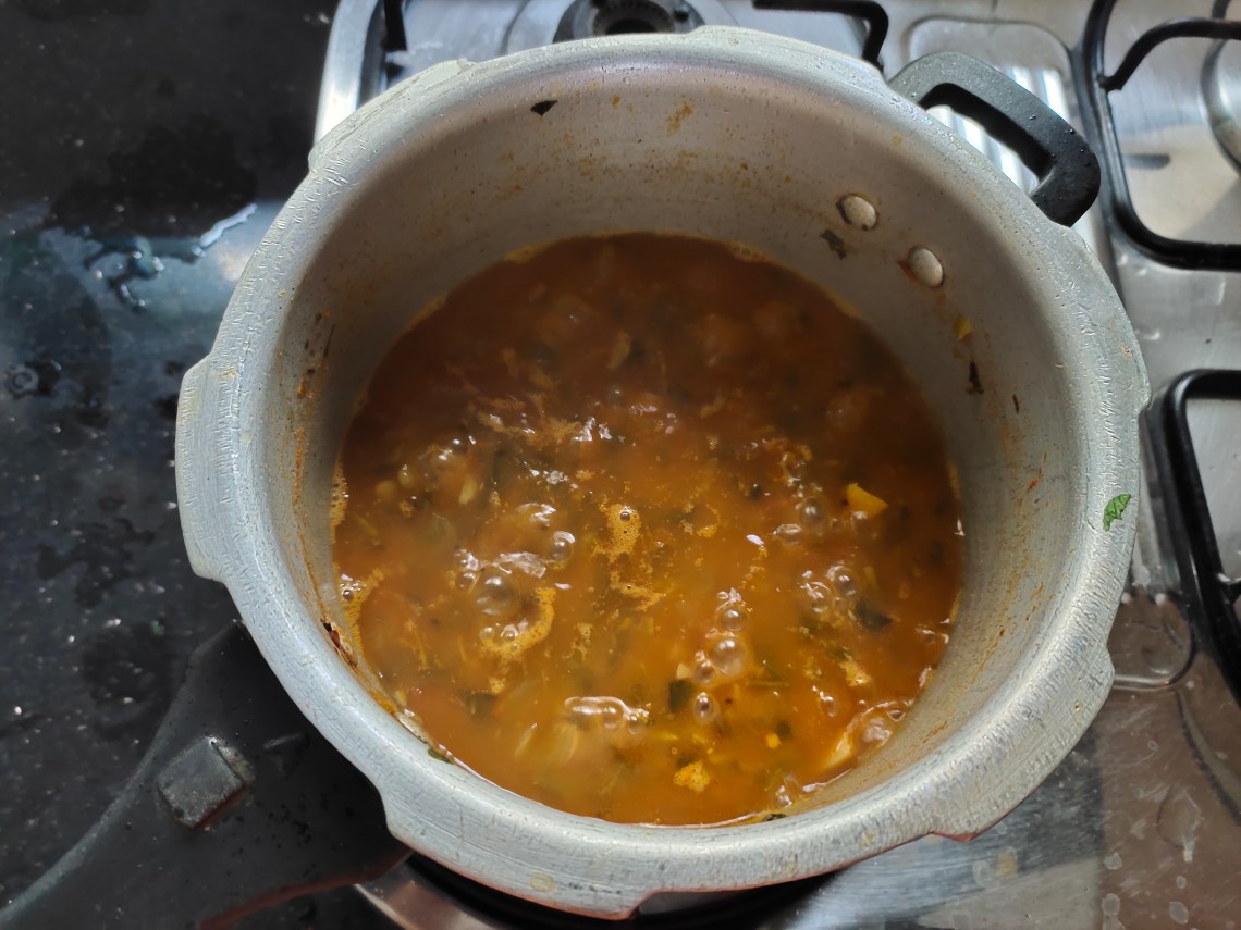 Allow it to cook until 3 whistles.