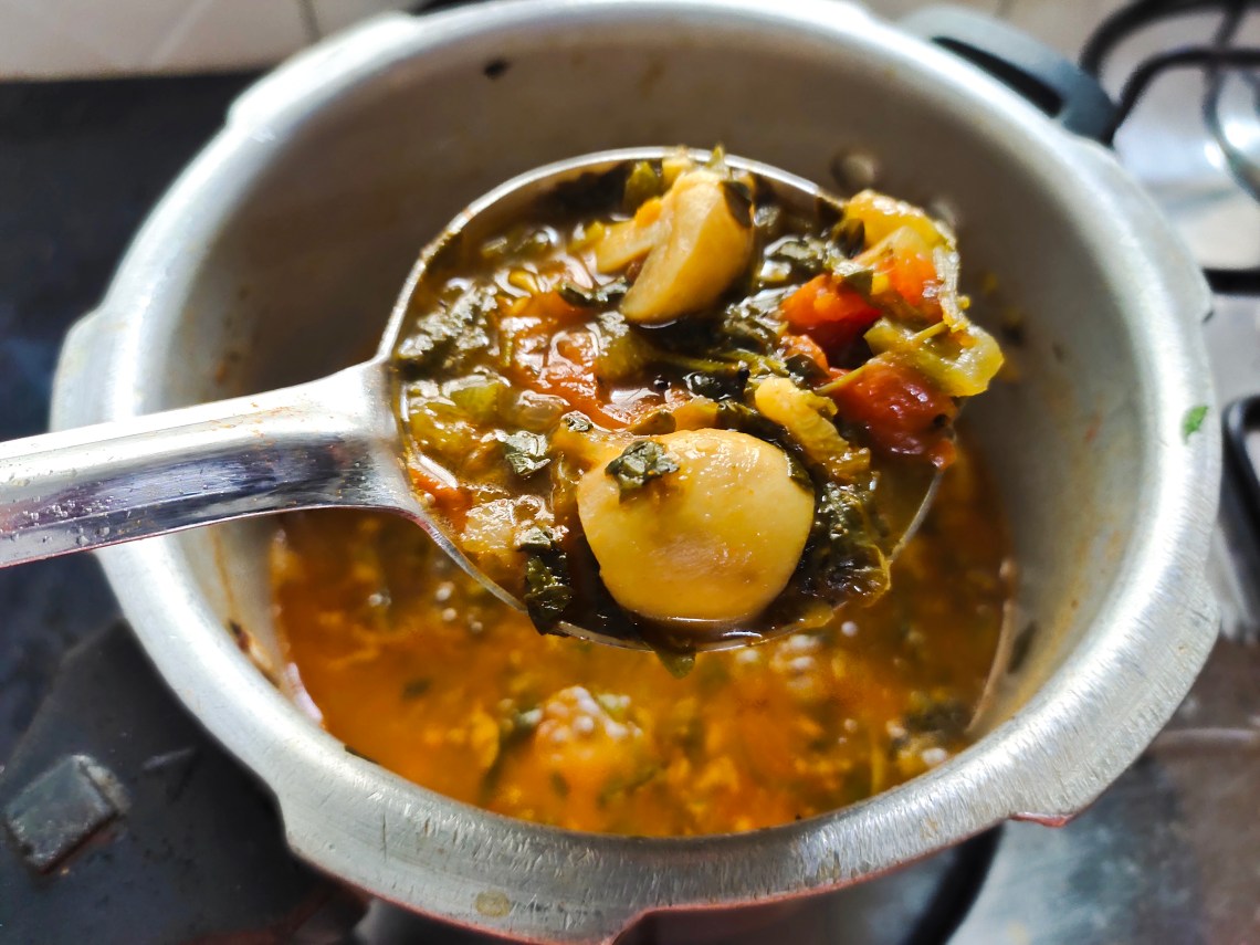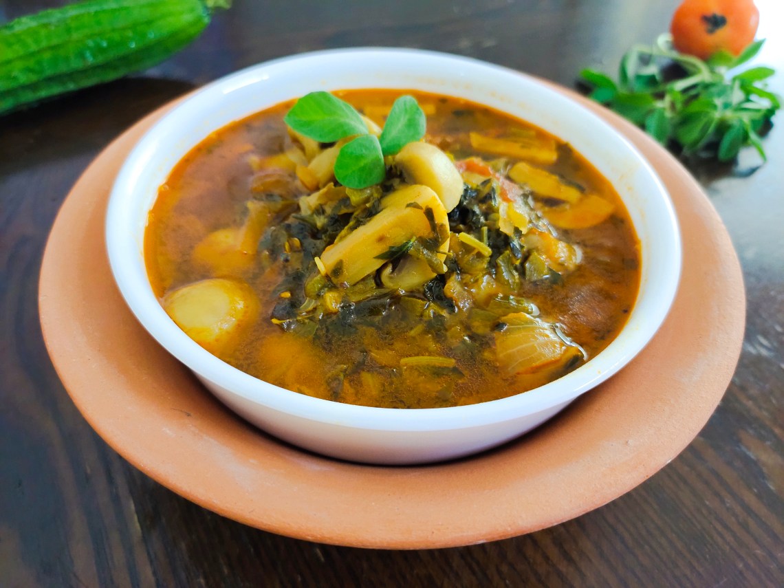 Its been a tradition to ground chilli powder in our home rather than buying from shops. So, it gives the authentic and actual fragrance to the curry. This curry is generally slow cooked in a pan. To make it easier, I have used pressure cooker method. If you are preparing same dish with meat, you may have to give more whistles to cook the meat. Here, I have given only 3 whistles for mushrooms. Very finely chopped methi leaves and ridge gourd give thickness and flavour to the curry. This curry is so tasty soupy kind of curry and it goes well with rice. Do try it for your family and relish it!