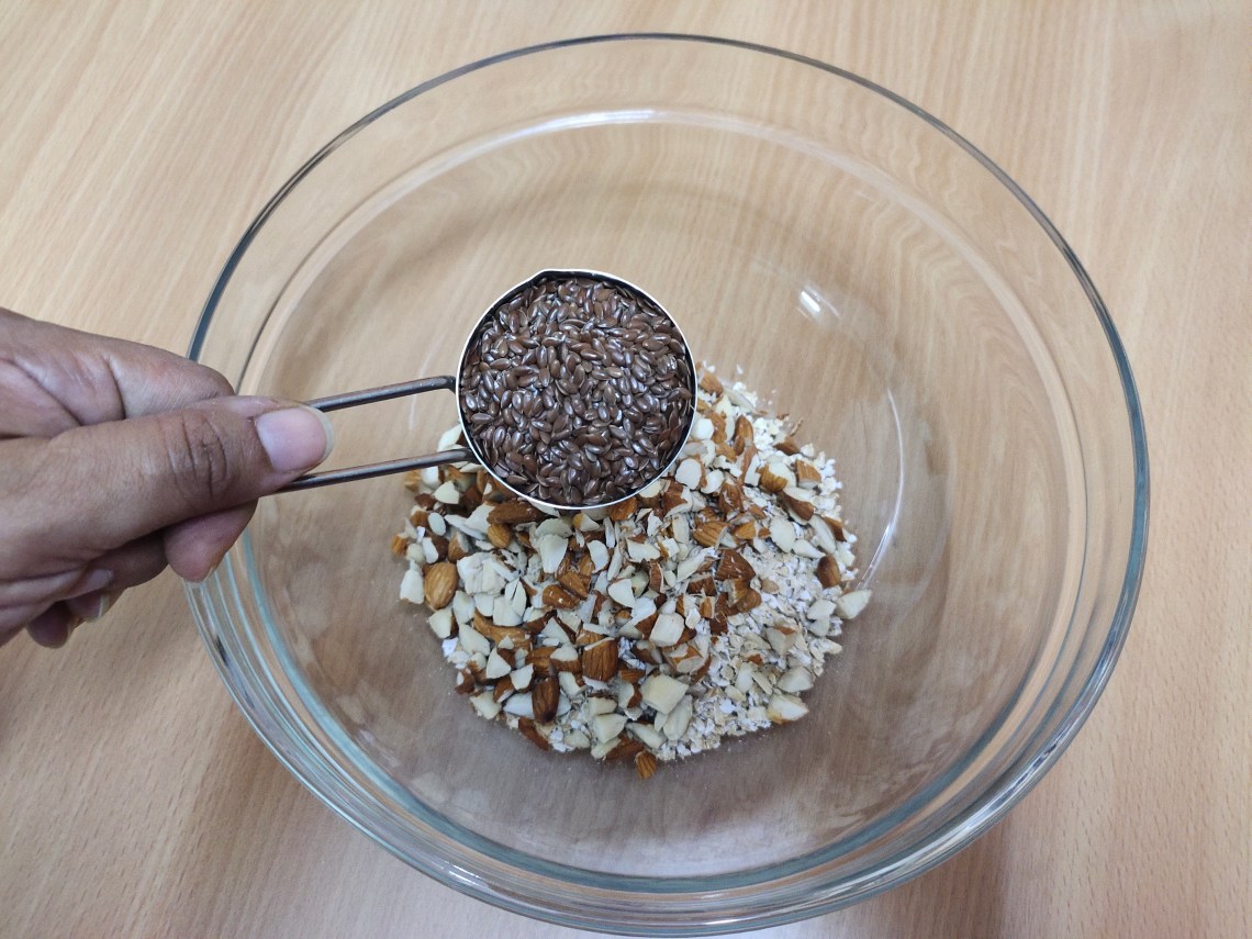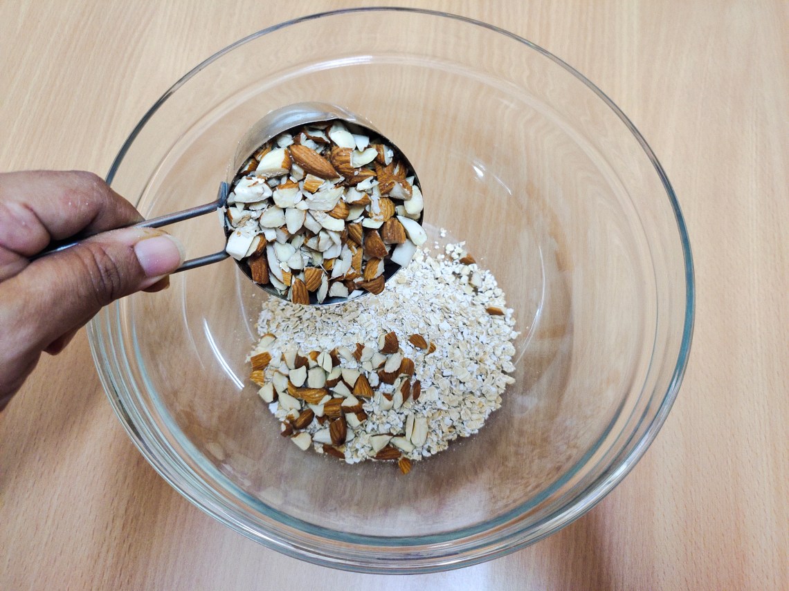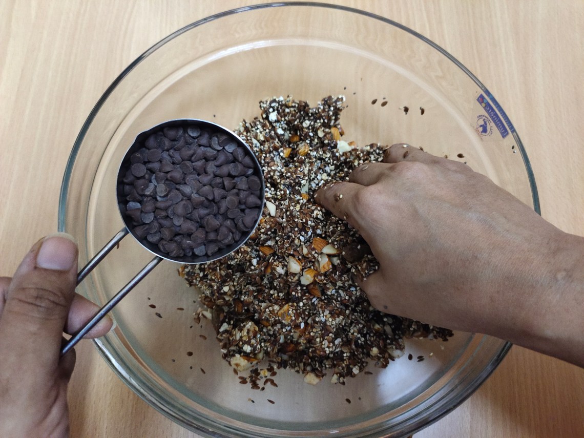 These days I stock nuts, oats and seeds in my pantry. My kids when they first tasted, liked it and wanted the granola bars every evening. Studded with the right amount of chocochips and wholesome ingredients like oats, nuts and seeds they are healthy enough to pass your snack time. I love the combination of choco chips in the bar. If you add too many nuts, the bars won’t hold together. For a gluten free one you can use gluten free oats.