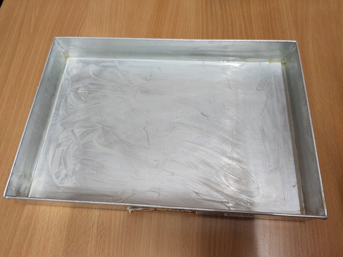 Firmly press the mixture to the sides of the pan with your hands then use a pallete knife to flatten the top.