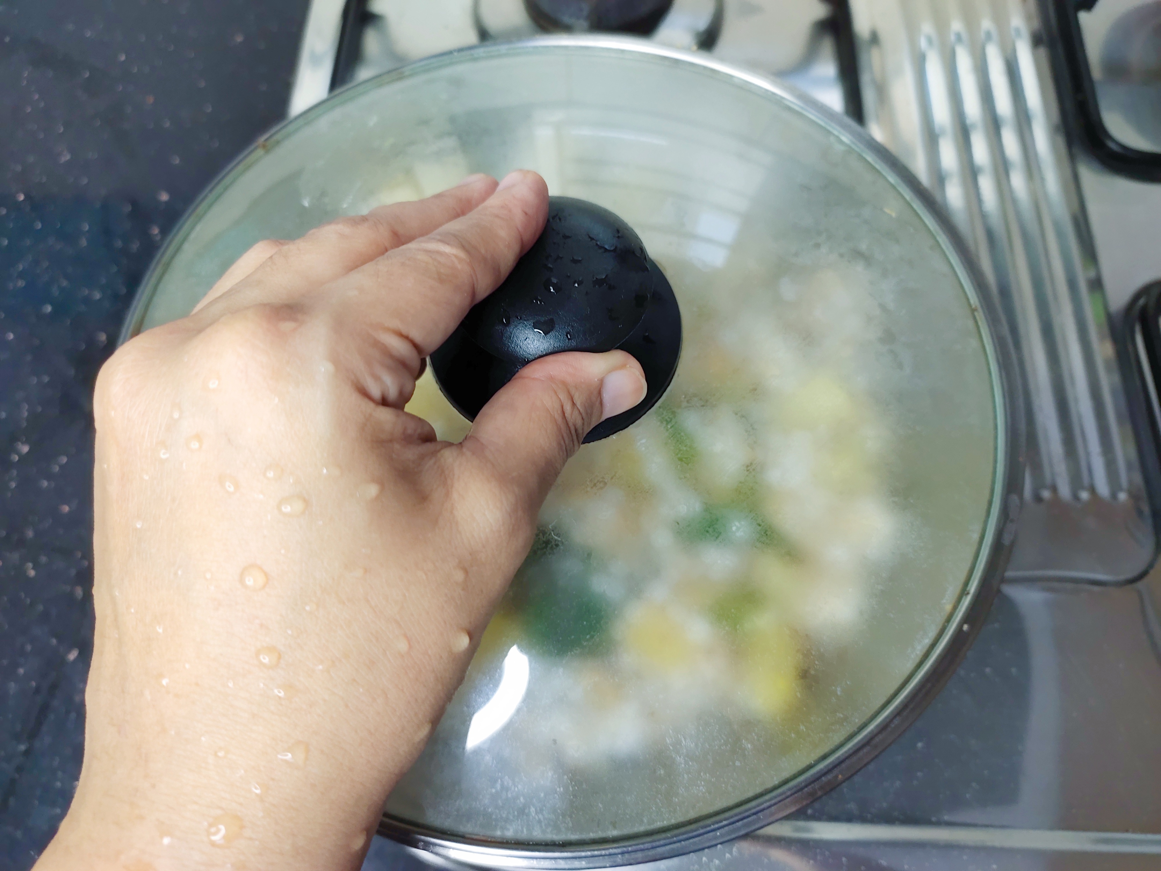 Mix everything well to combine and close it for a minute in simmer.