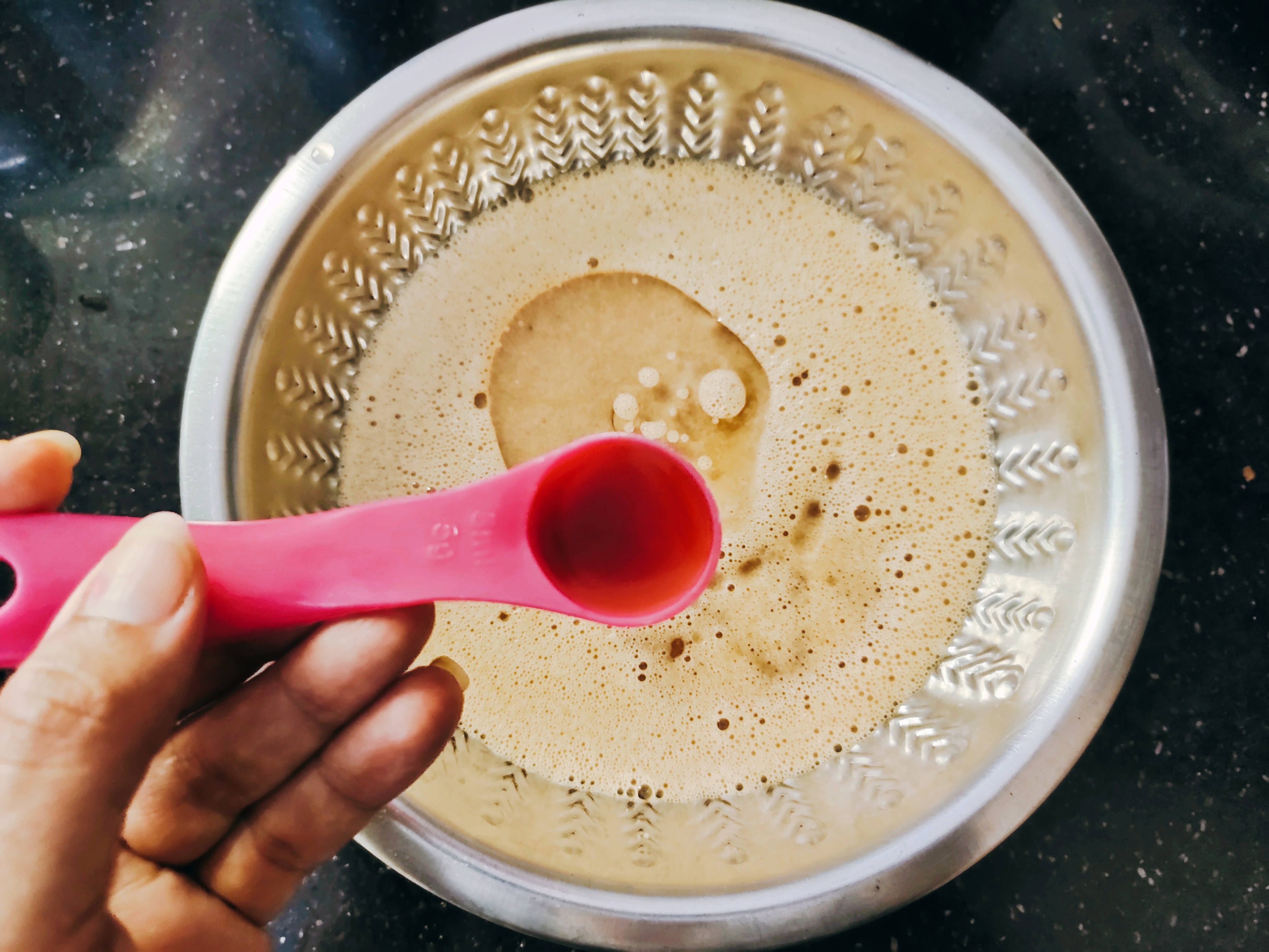 Add 70 ml oil and 1tsp vanilla extract to it.