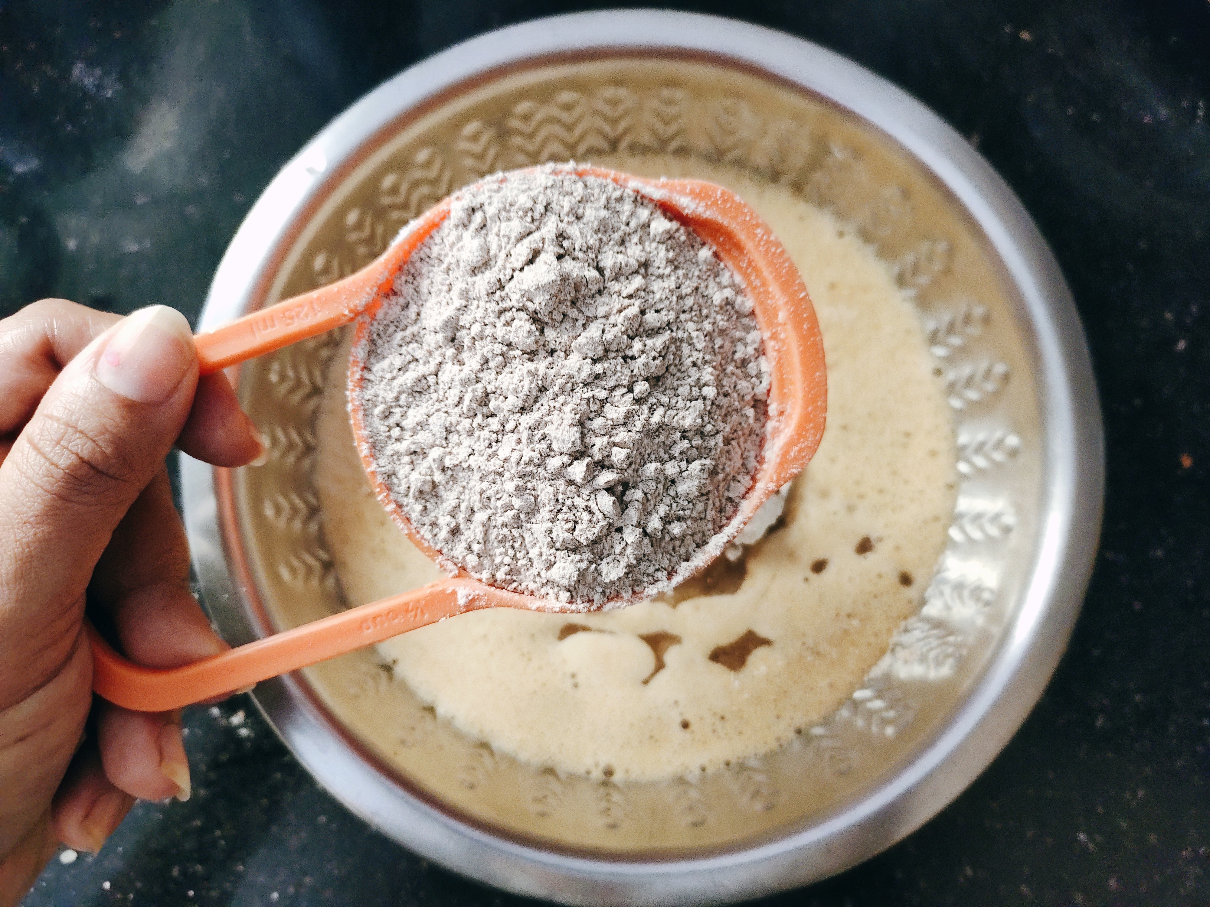 Measurement of each and every ingredient plays the major role in baking a cake. You can bake this cake in pressure cooker or steam using a pan without electricity and other appliances. This is an easiest recipe to make a multigrain banana cake when your loved ones demand.