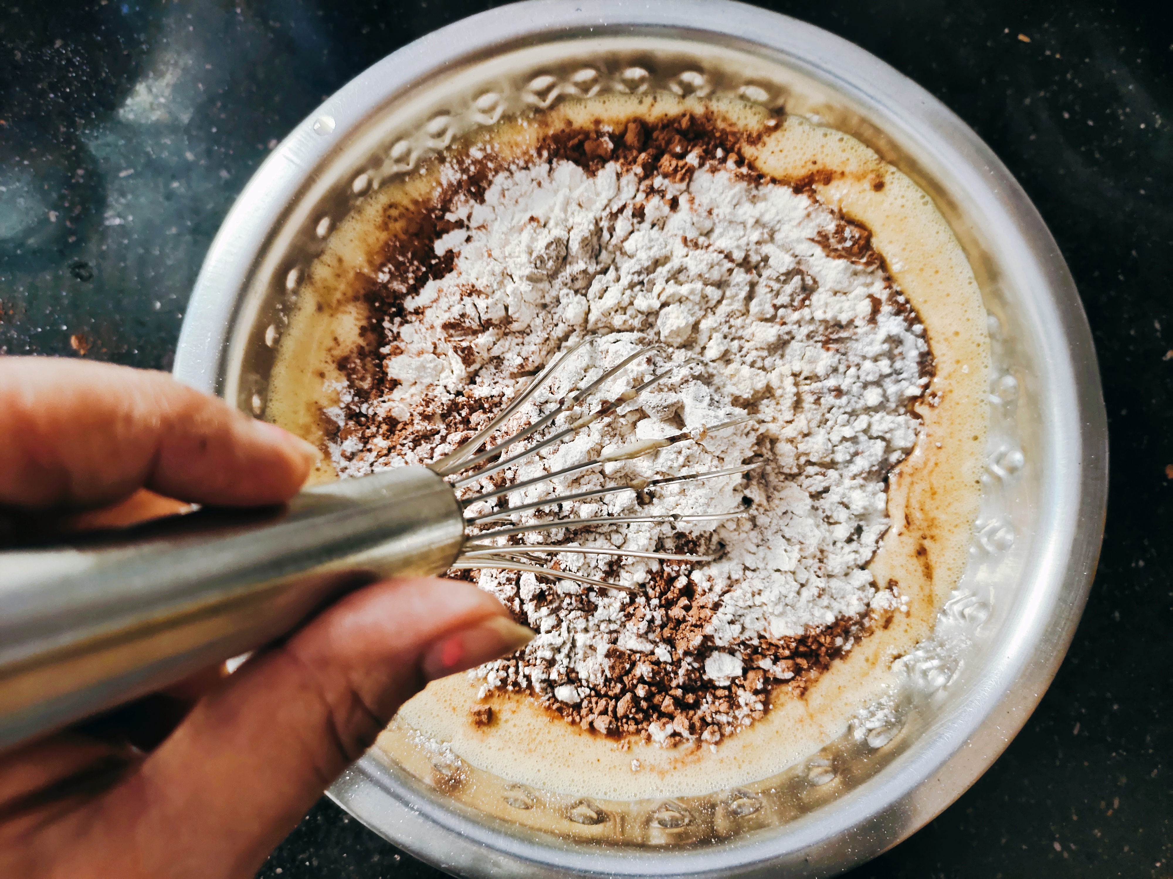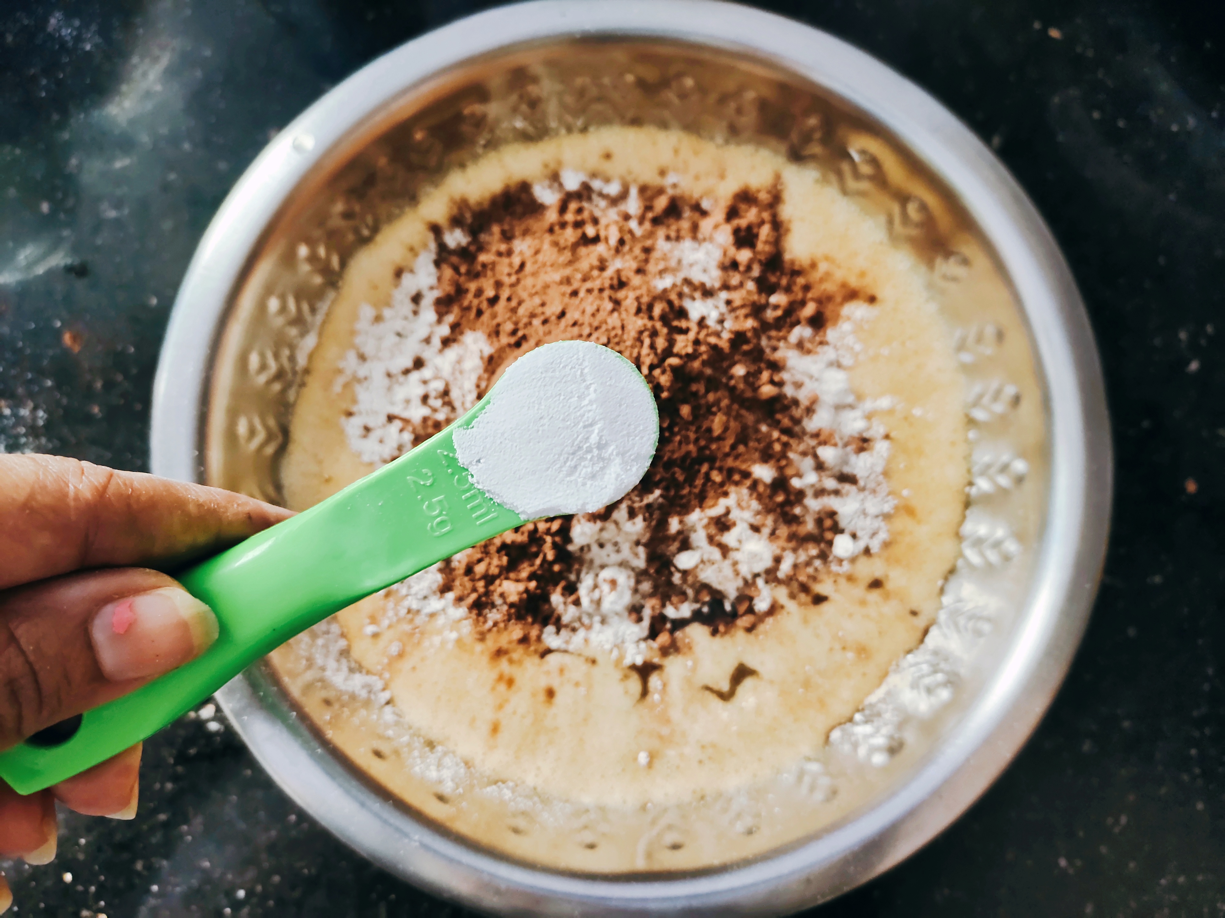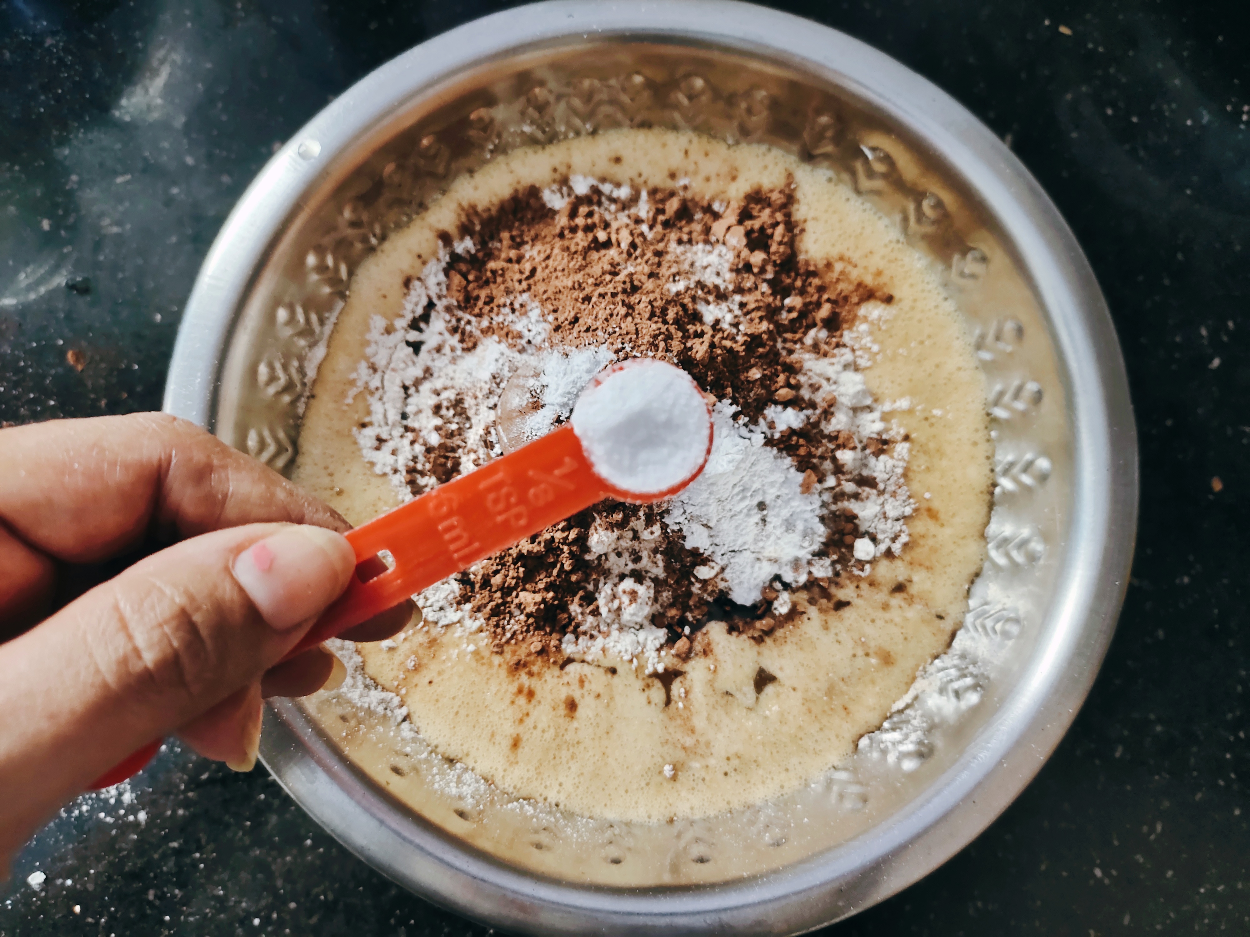 Add 2 tbsp cocoa powder and 1/2 tsp baking powder.
