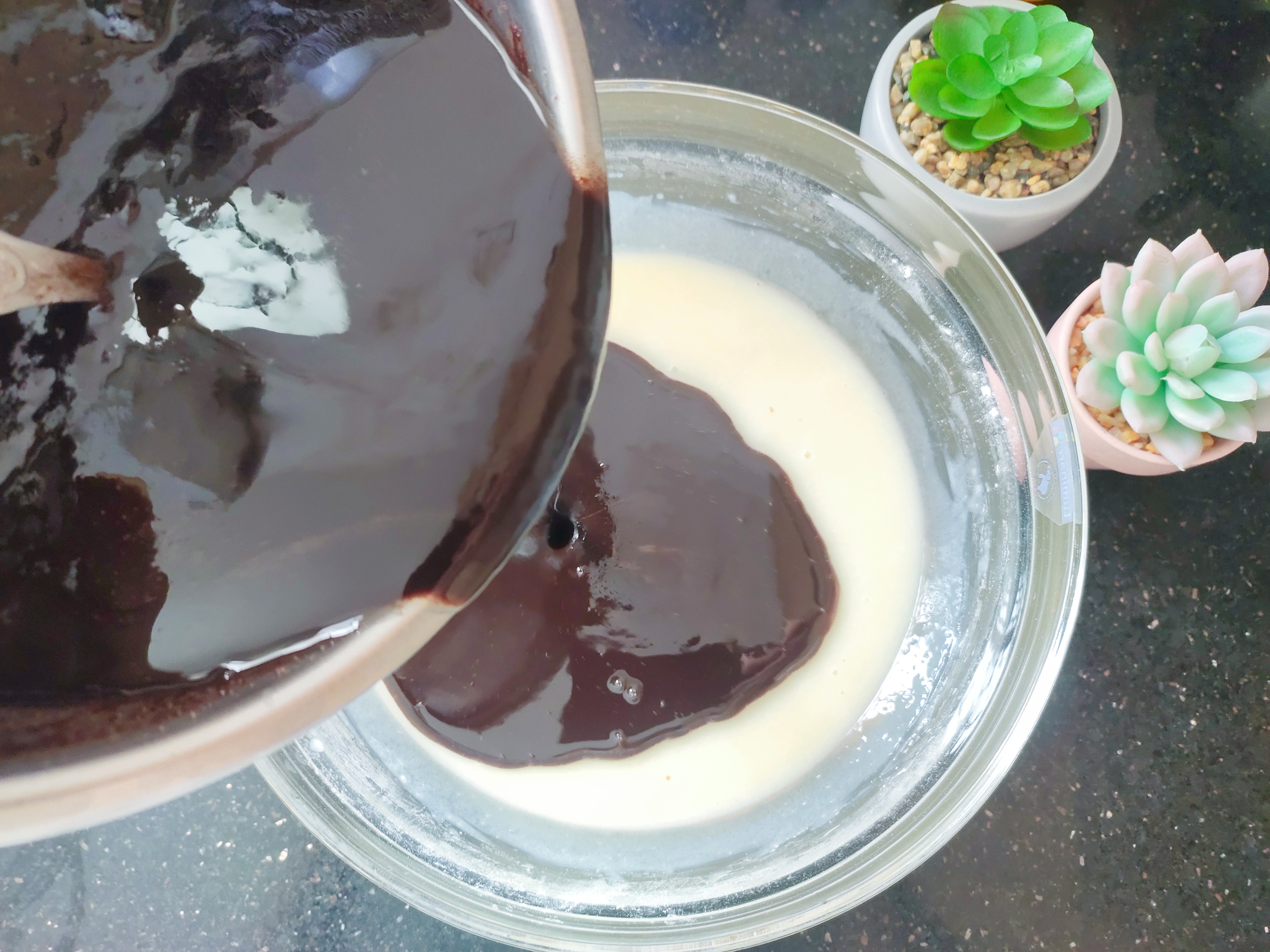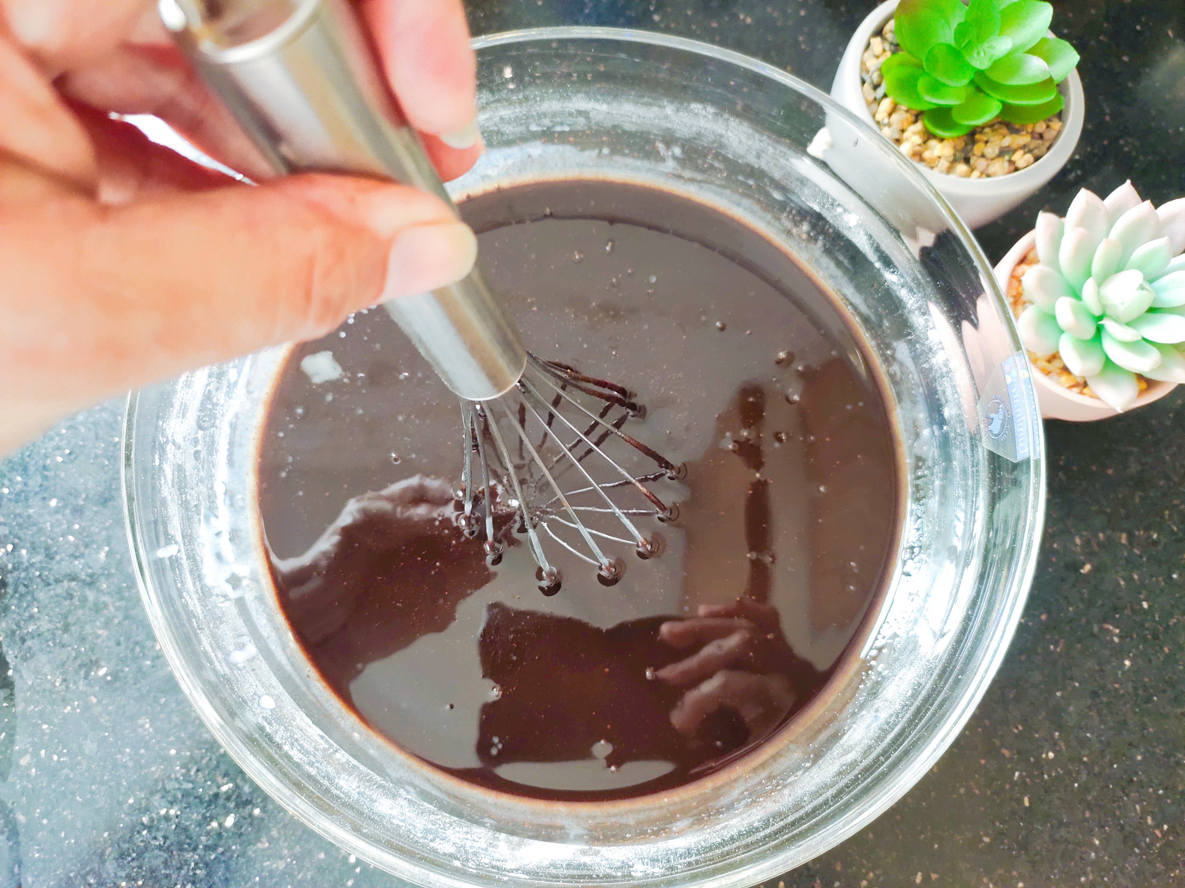 Pour the melted chocolate butter and whisk.
