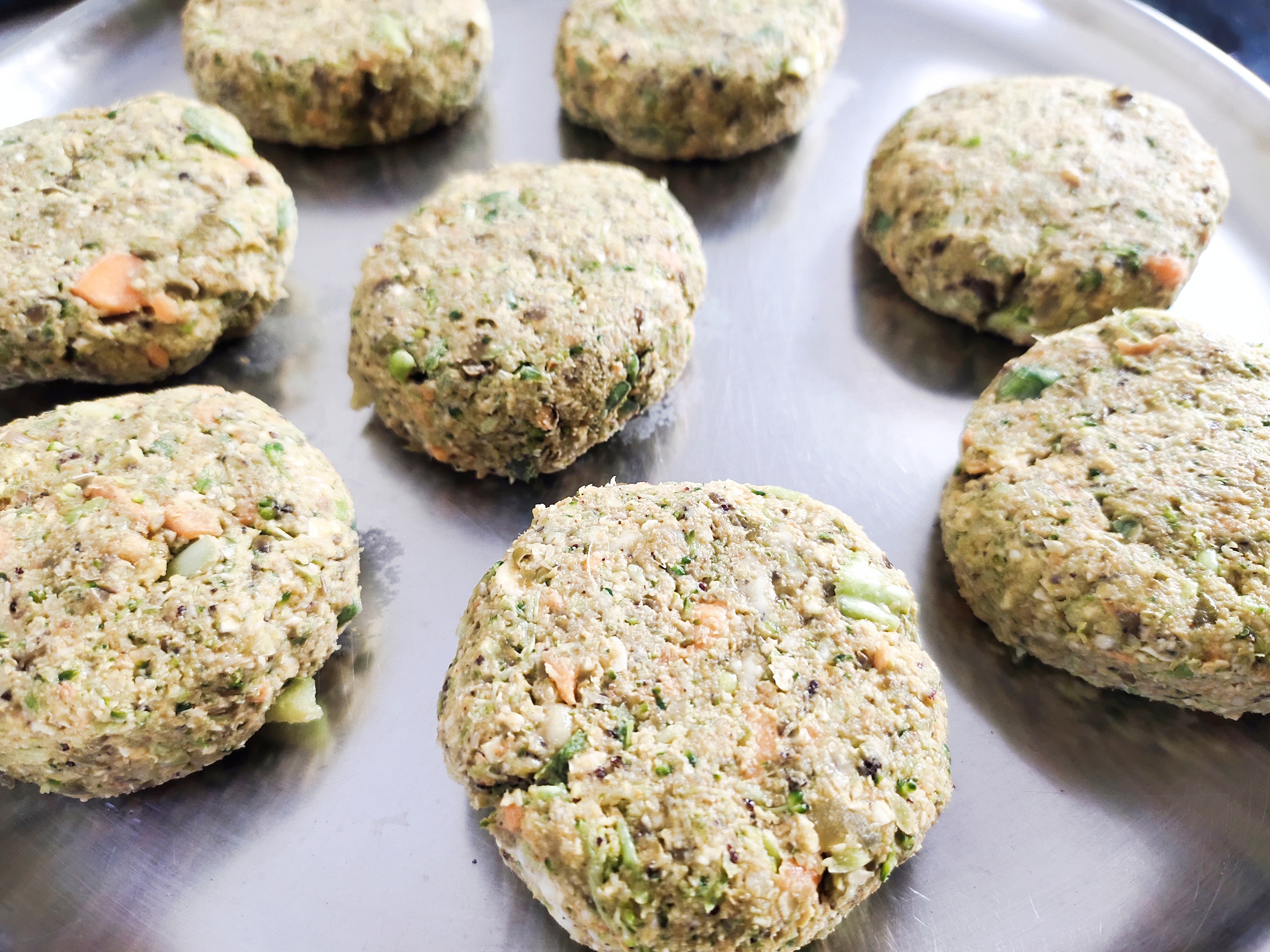 Binding agent is very important to make these cutlets. These are made without cornflour, eggs and potatoes. Whenever you say cutlets, undoubtedly aloo tikkis come to mind. But, these tikkis without the aloo tastes really good. Tomato ketchup is more than enough for a dip.