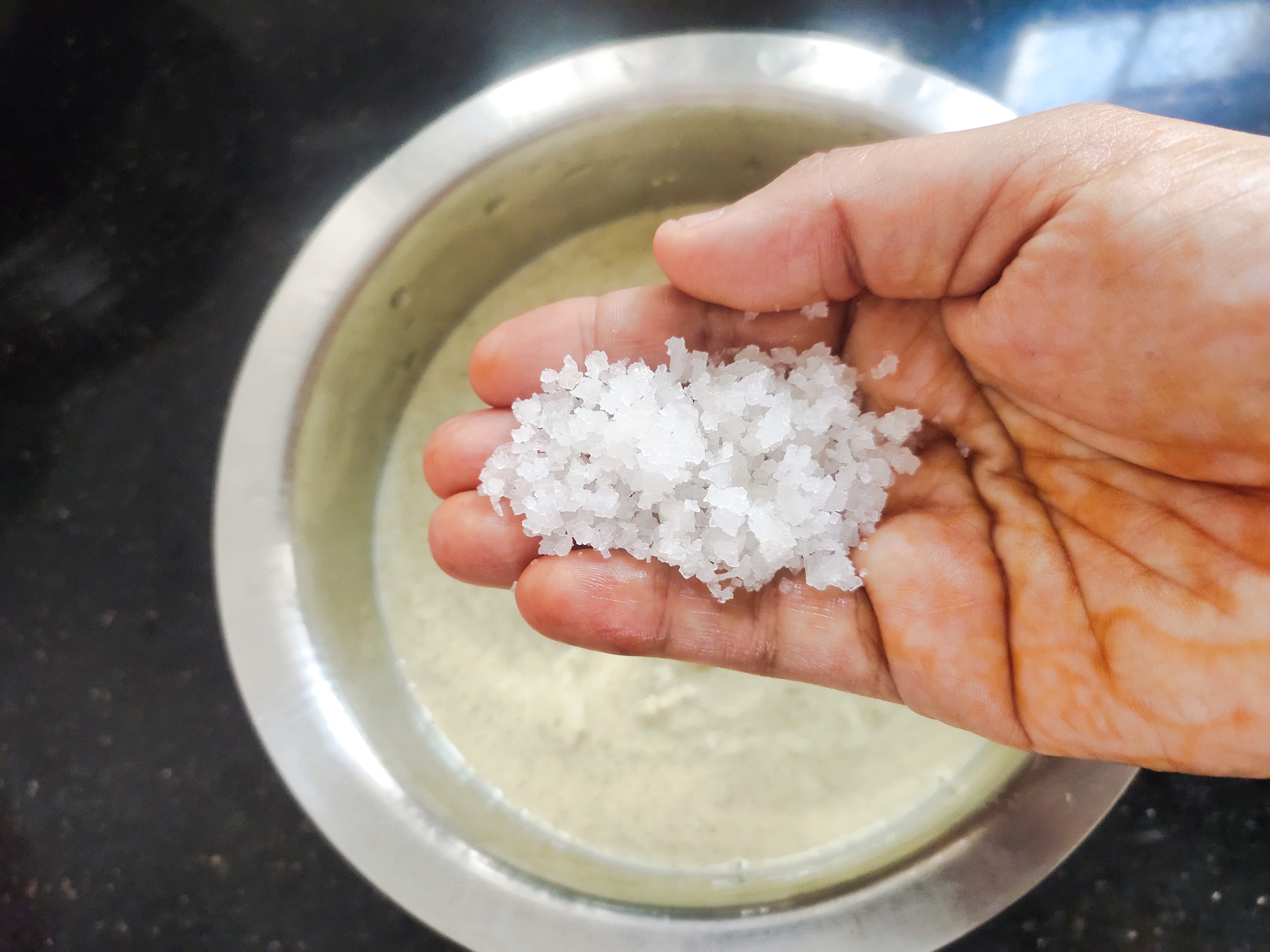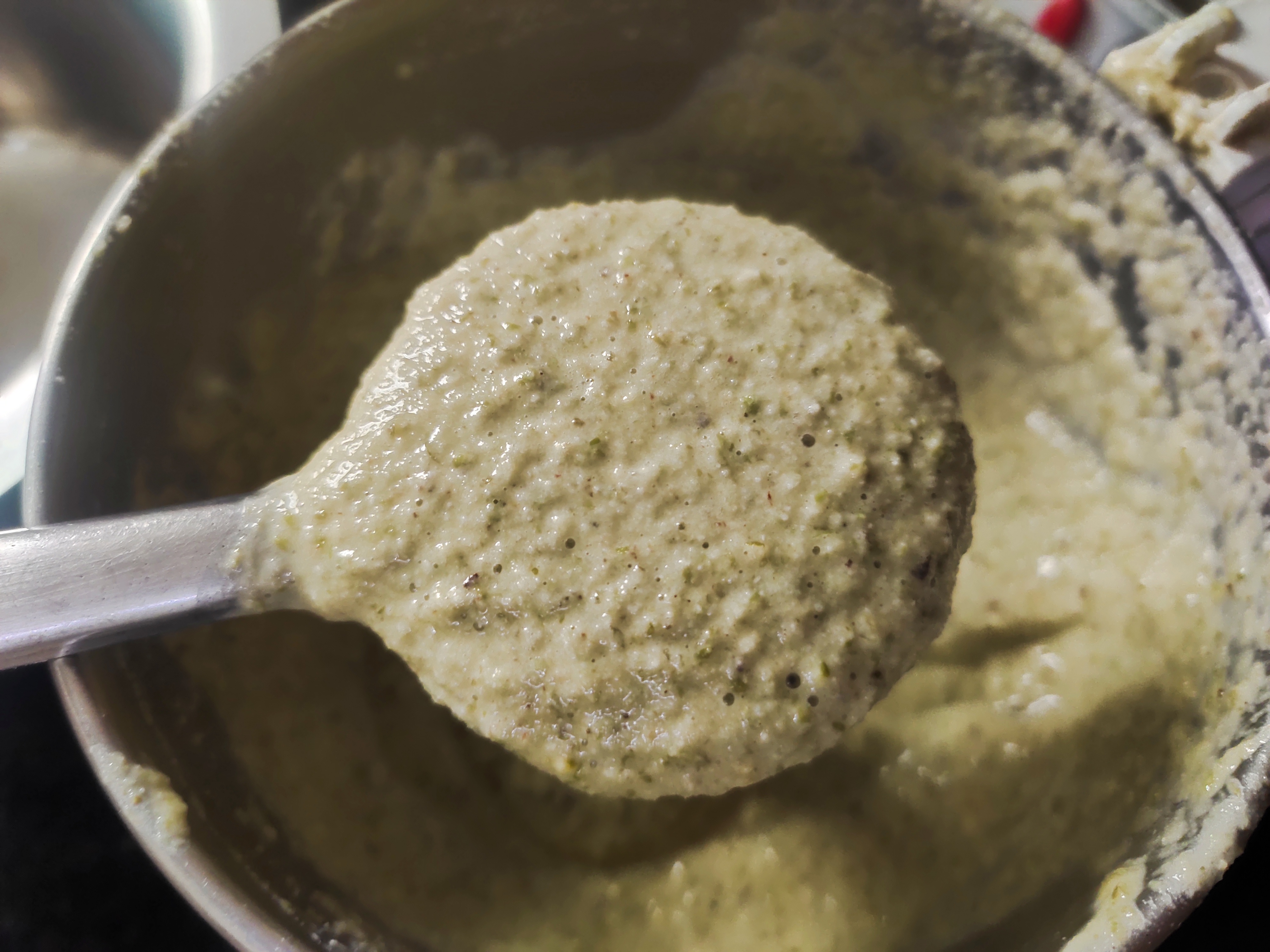 Grind the batter slightly coarse. Add rock salt 1 tbsp.