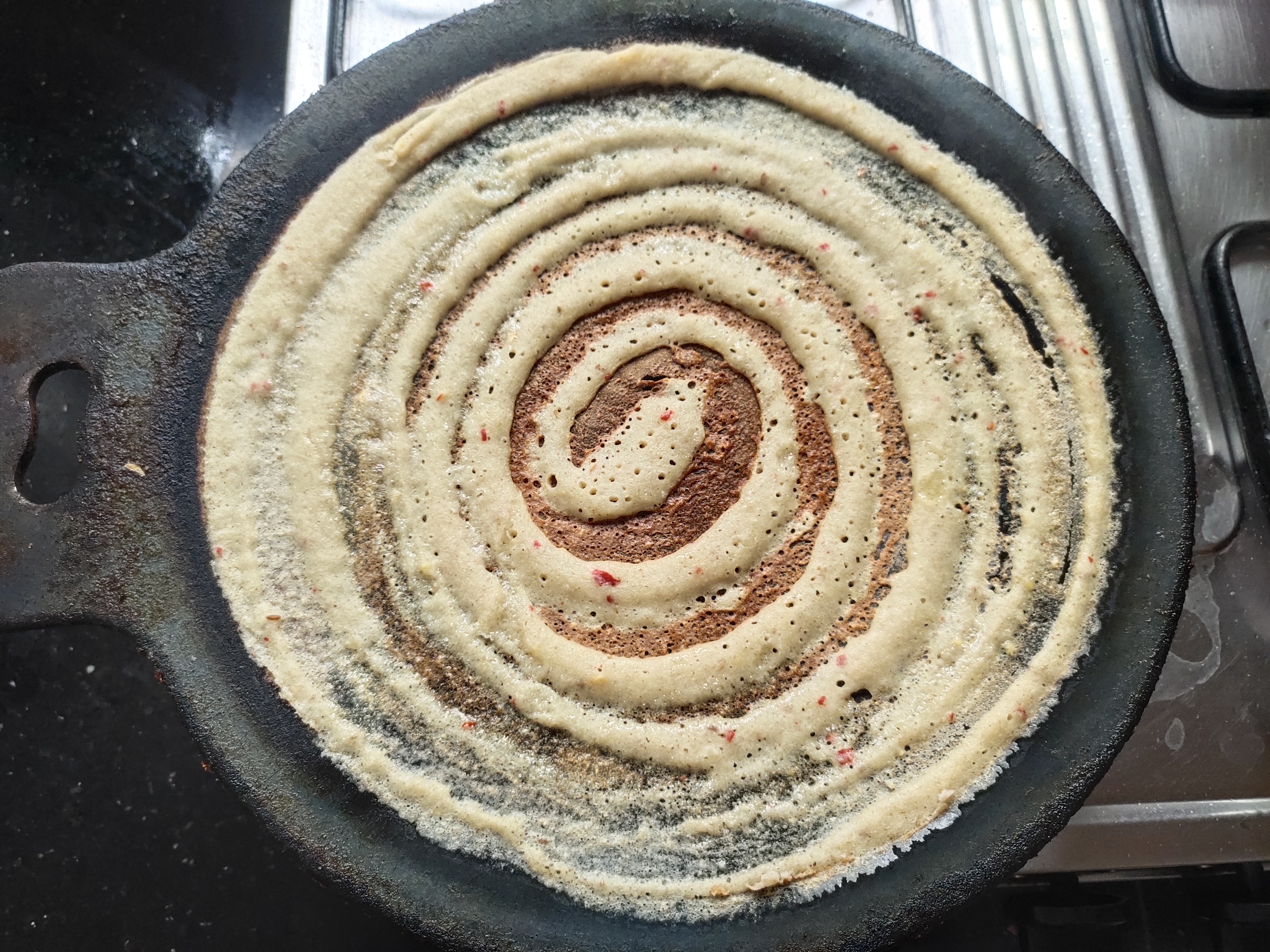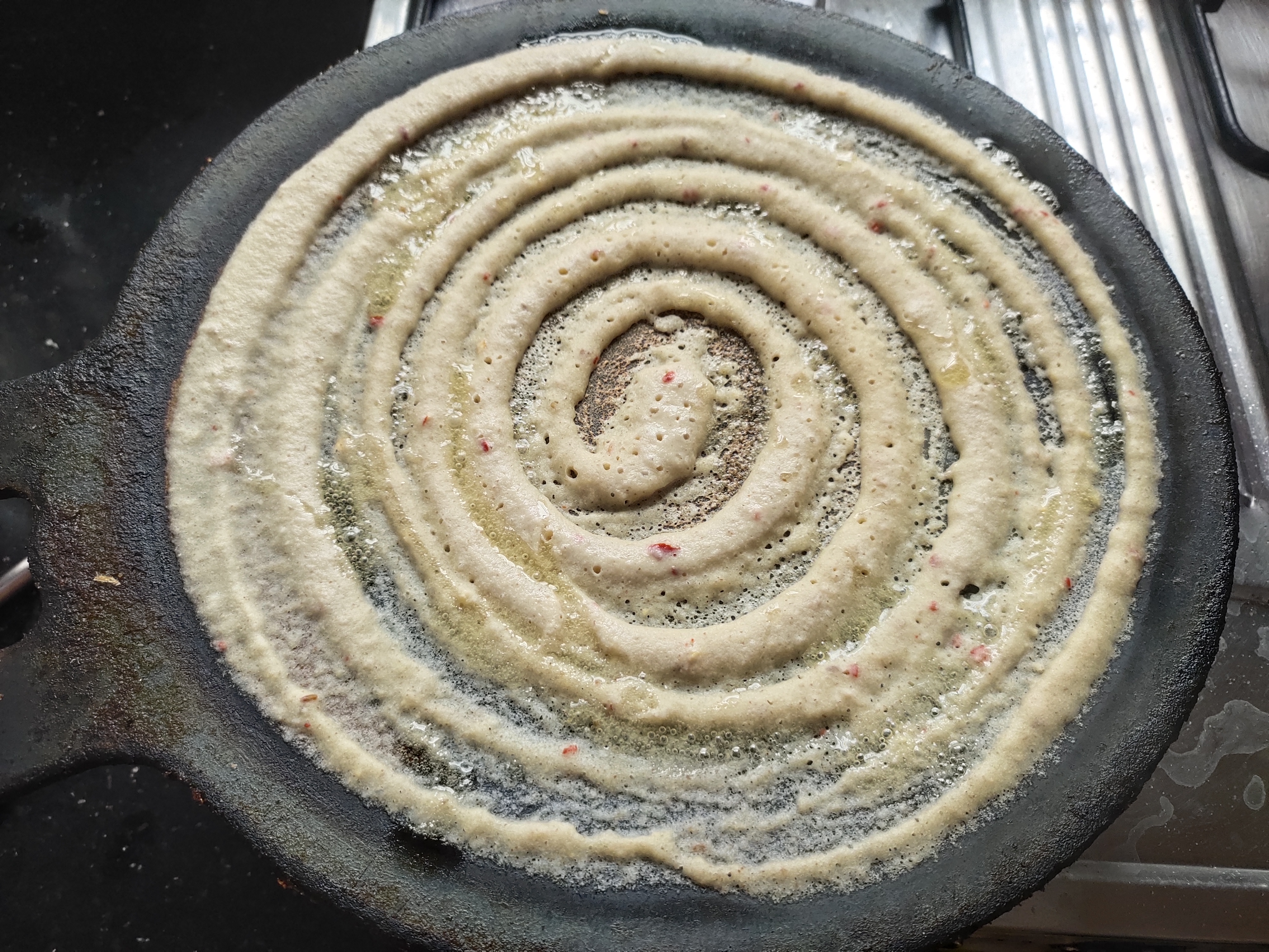 After an hour, heat the iron dosa tawa.